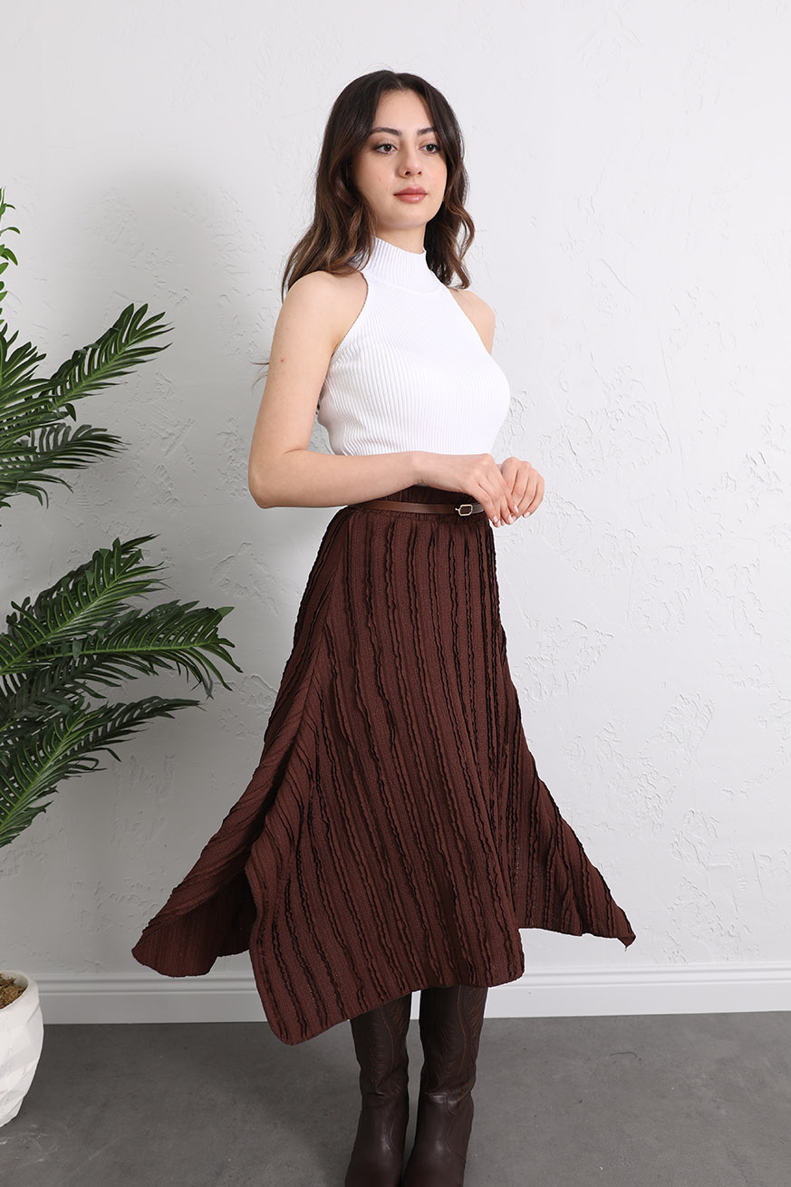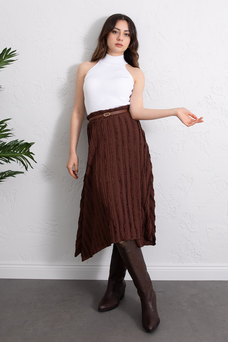 Fırfıt Kumaşlı Asimetrik Etek Kahve - 1159-Kahve