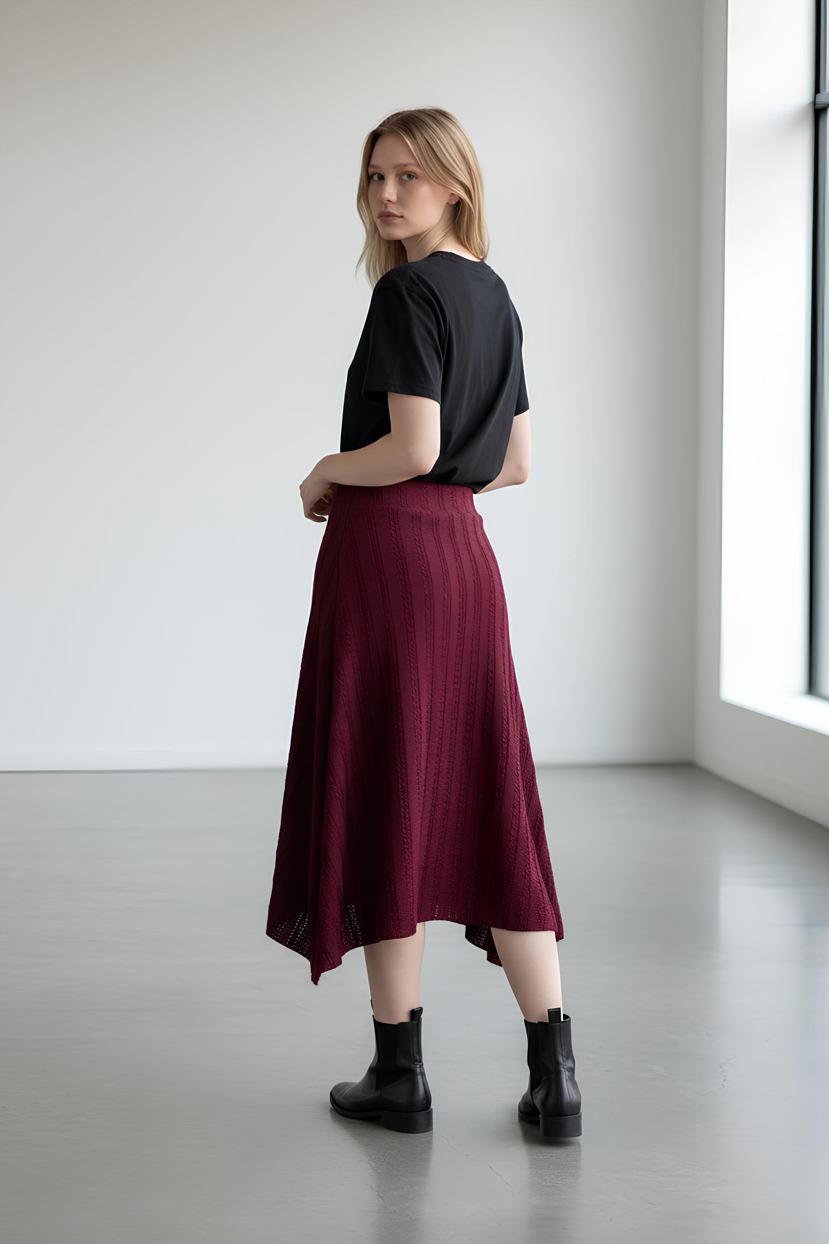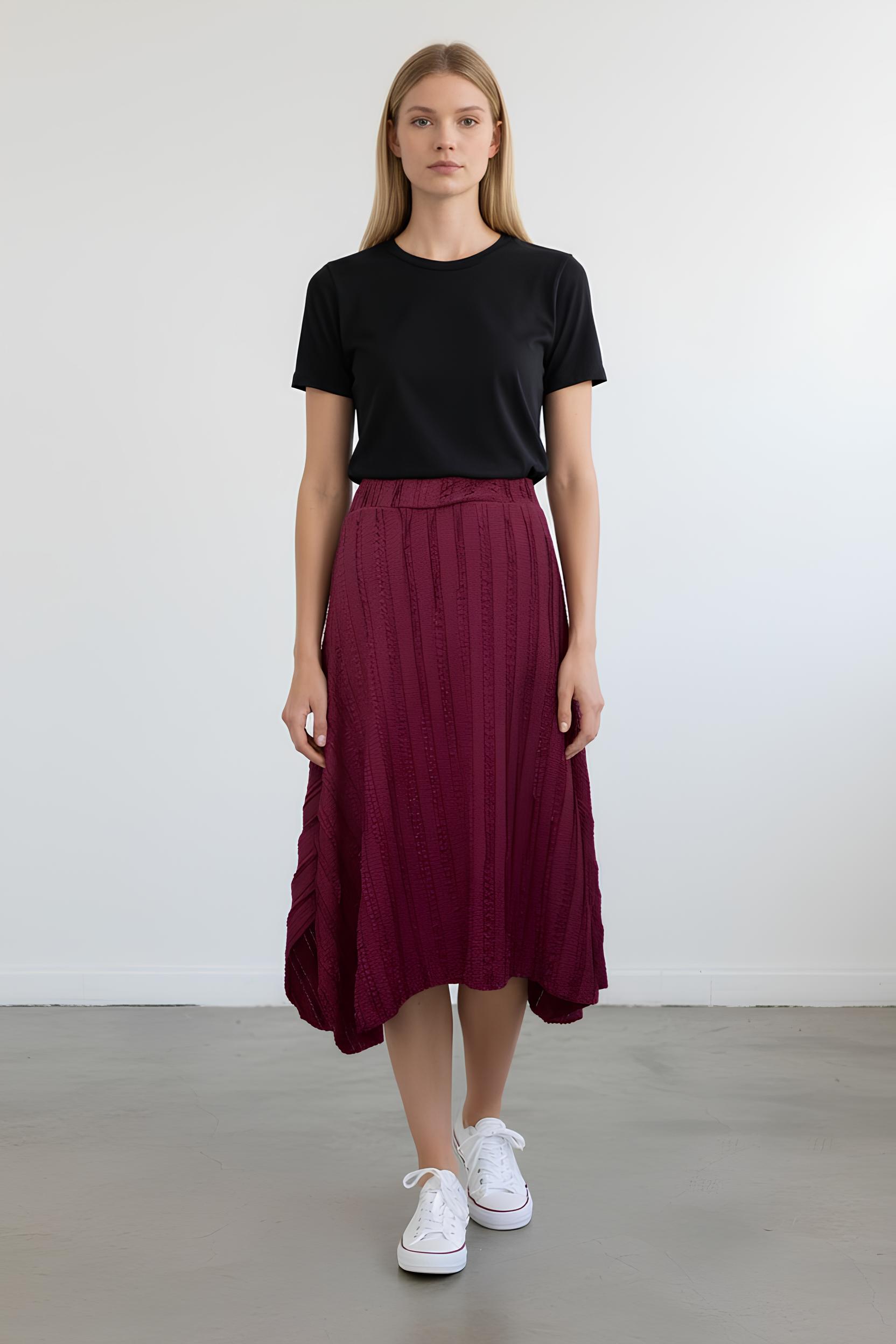 Fırfıt Kumaşlı Asimetrik Etek Bordo - 1159-Bordo