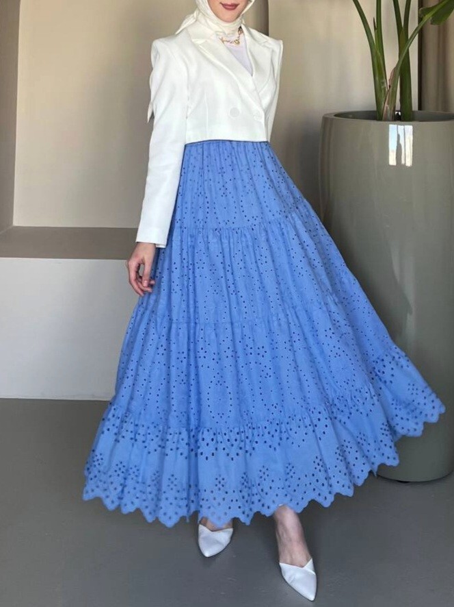 Fisto İşlemeli Katlamalı Etek -Mavi-Mavi