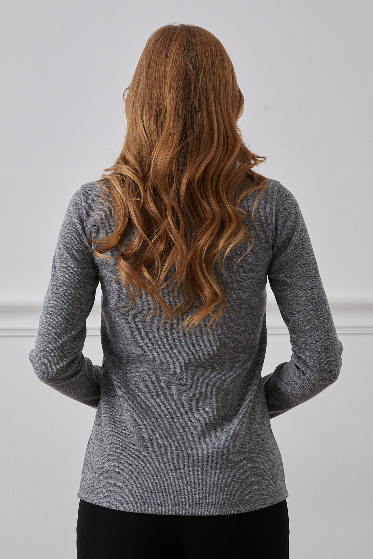 Fitilli Balıkçı Yaka Body-Koyu Gri