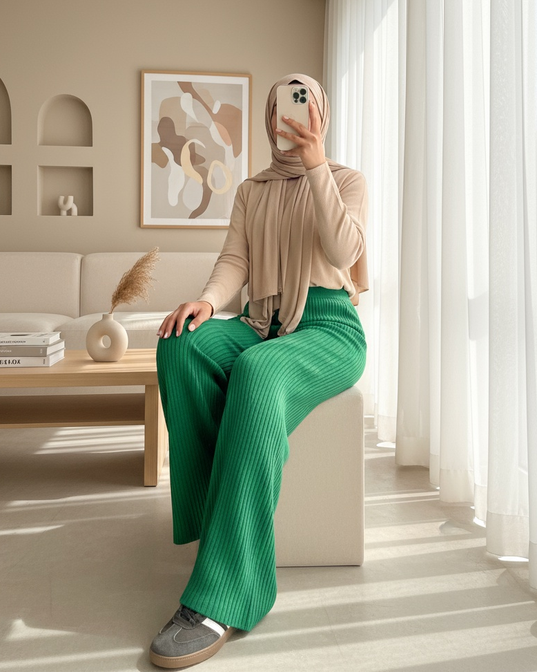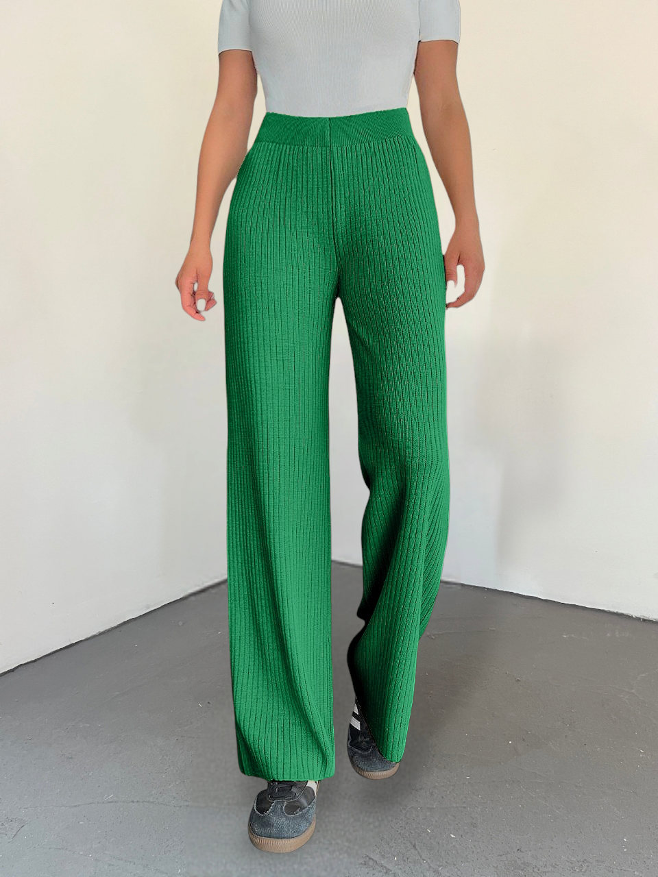 Fitilli Triko Pantolon -Yeşil-Yeşil