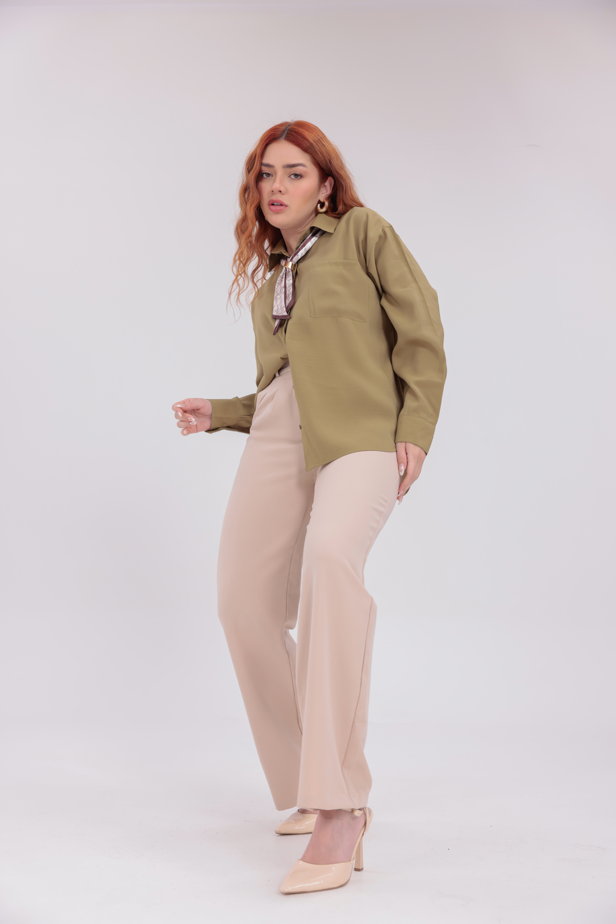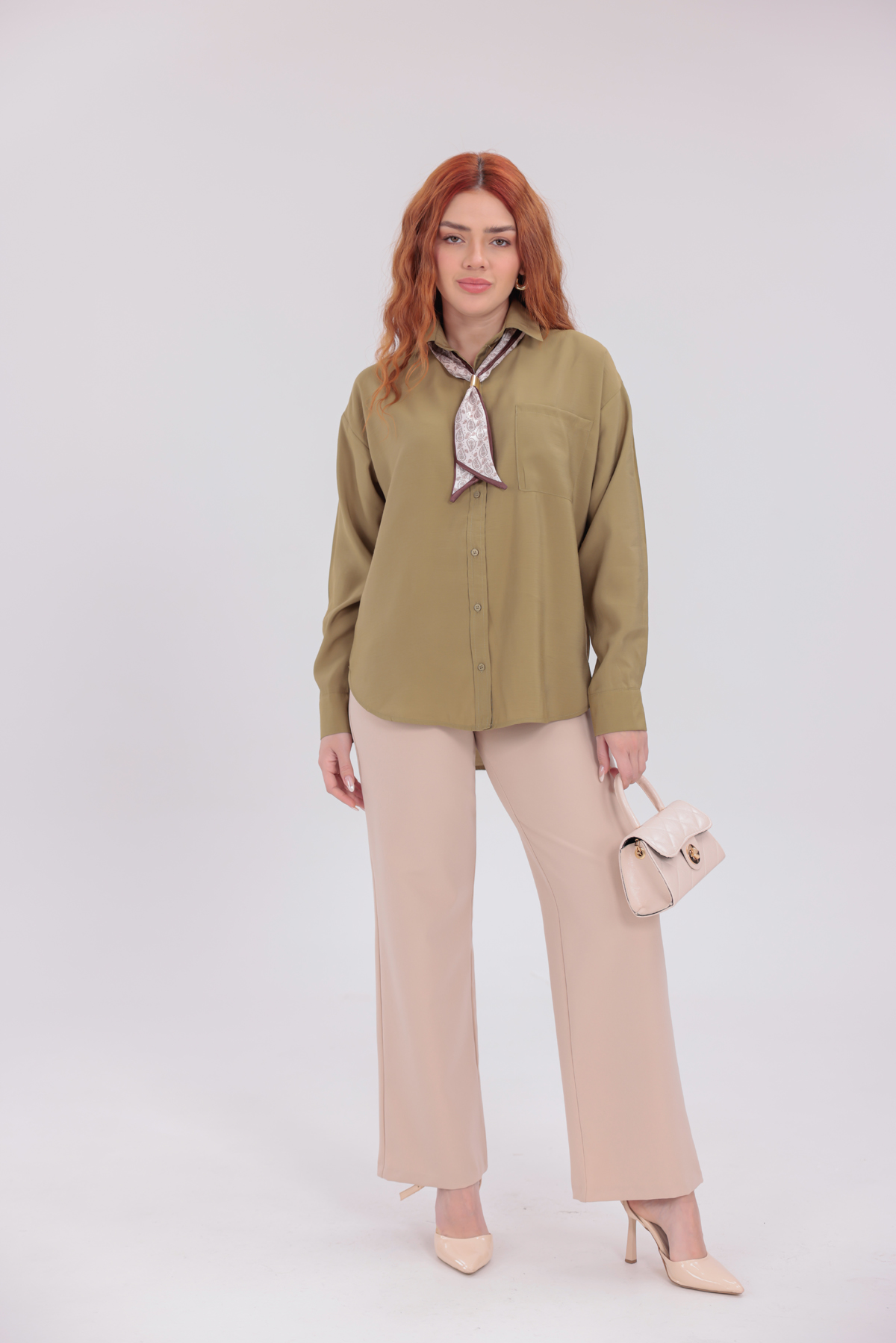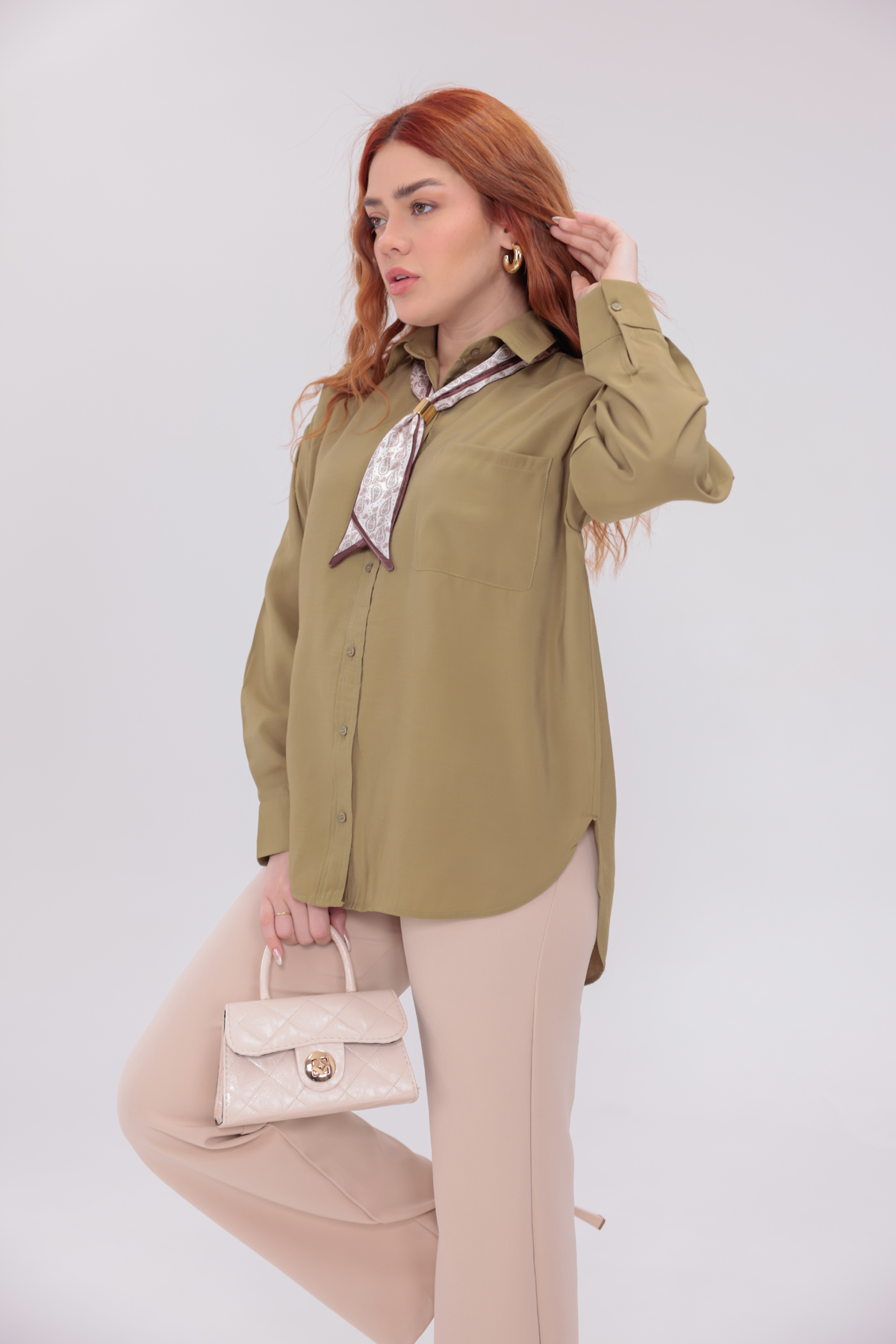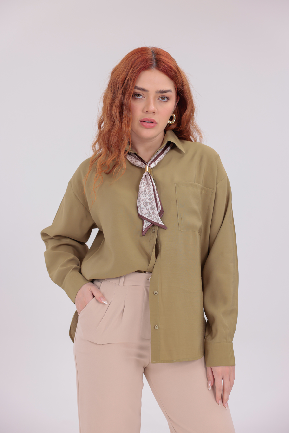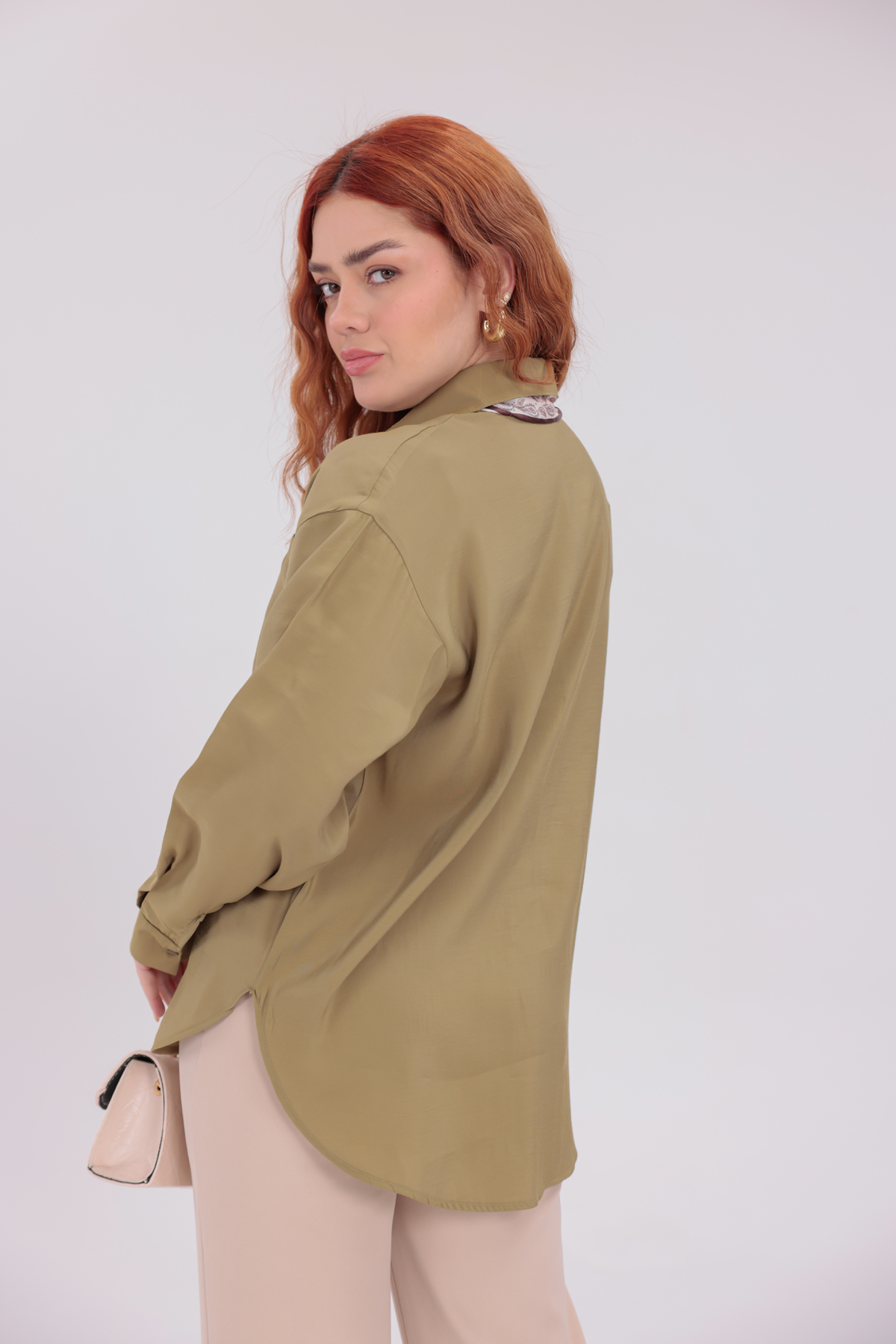 Fular Detaylı Modal Gömlek Haki - 213-Haki