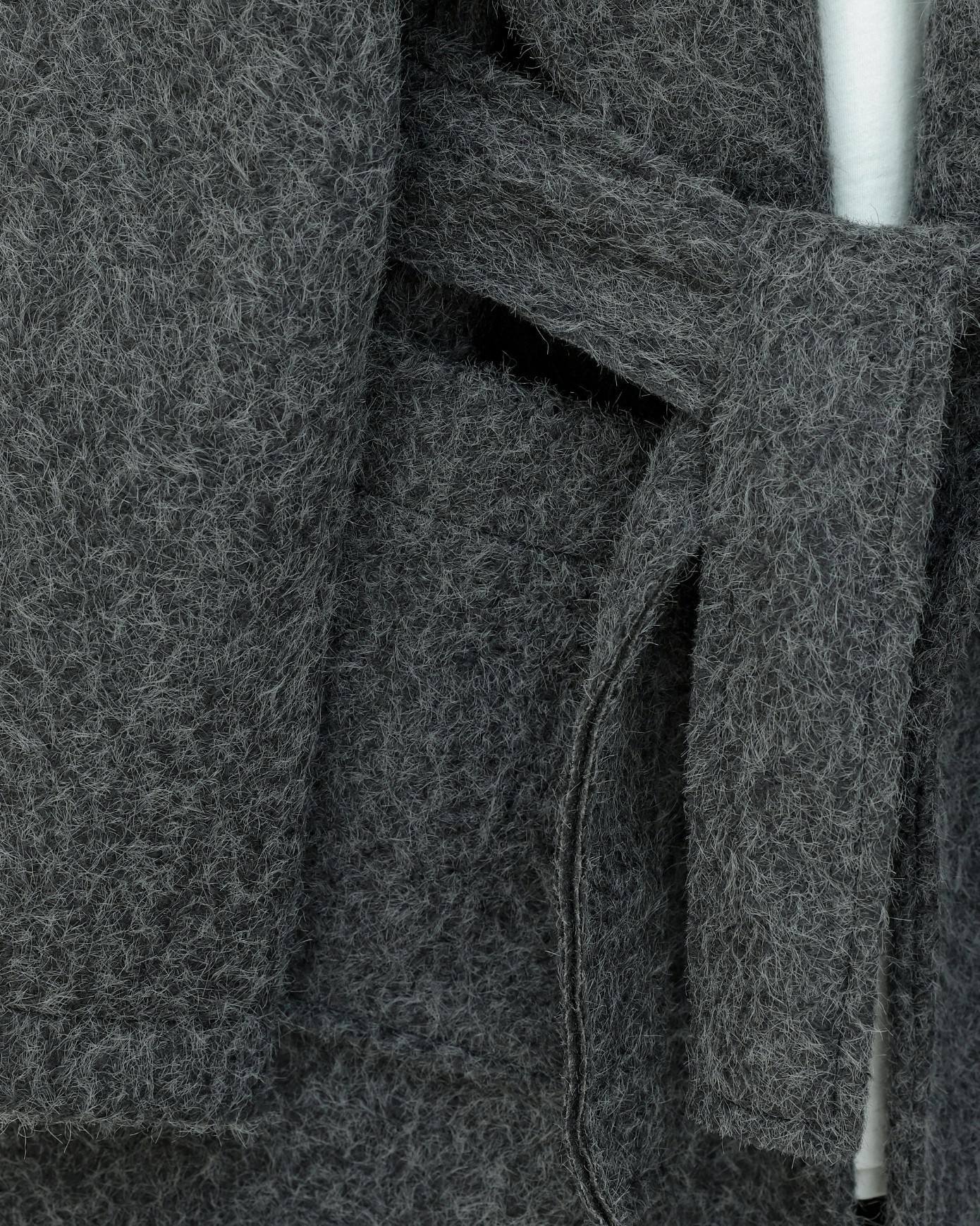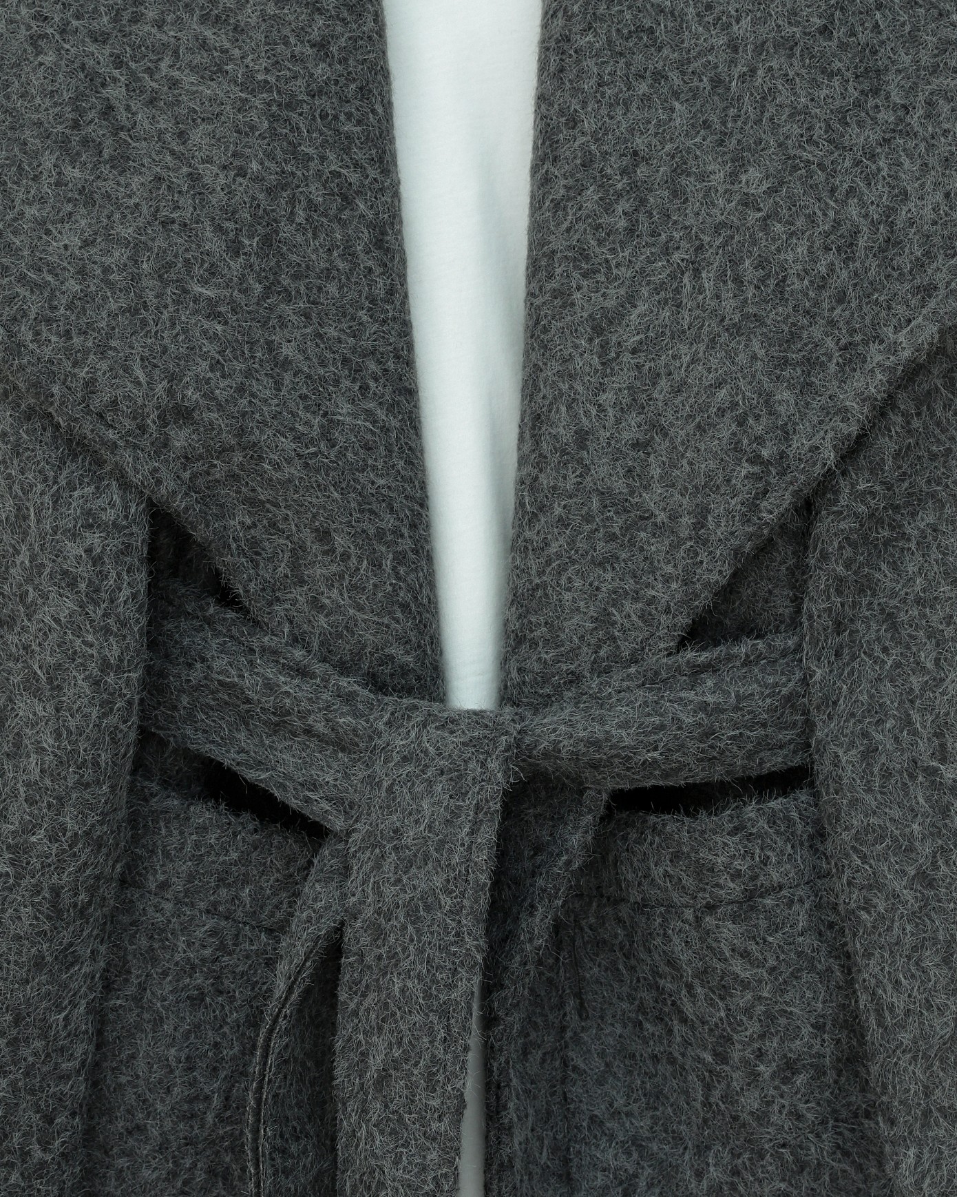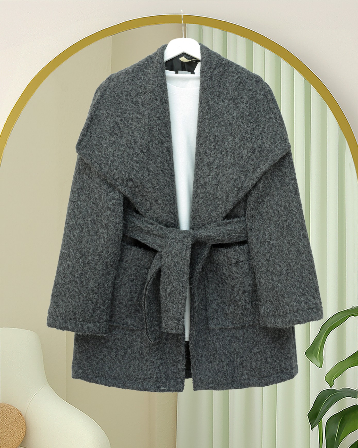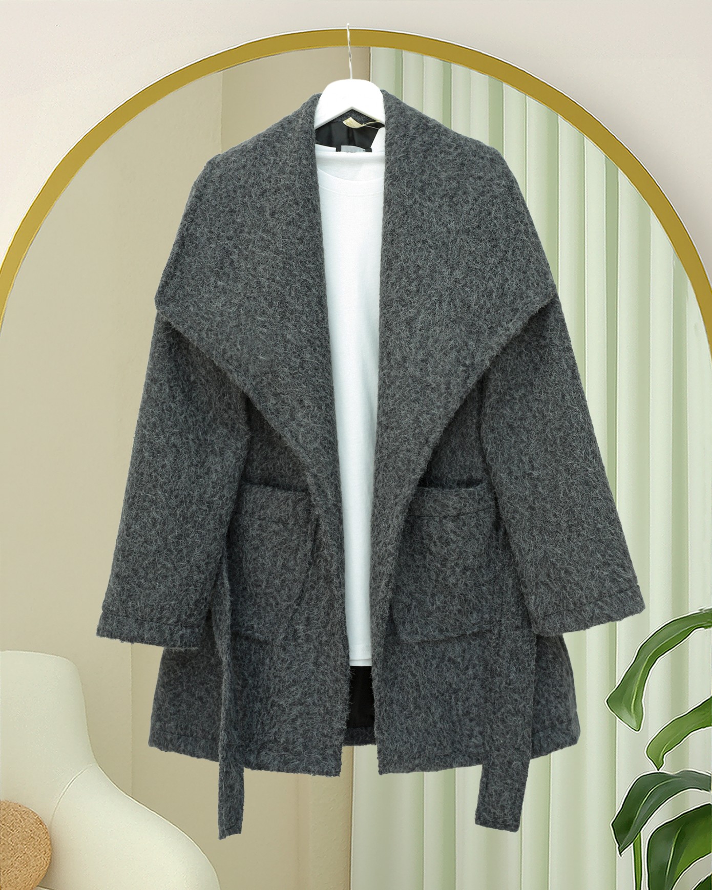 Geniş Yakalı Beli Kemerli Cepli Kaşe Kaban -Antrasit-Antrasit
