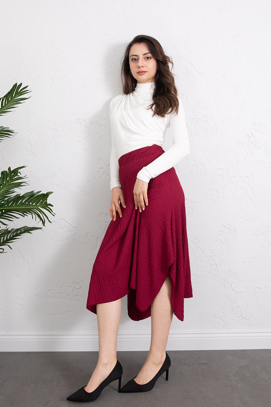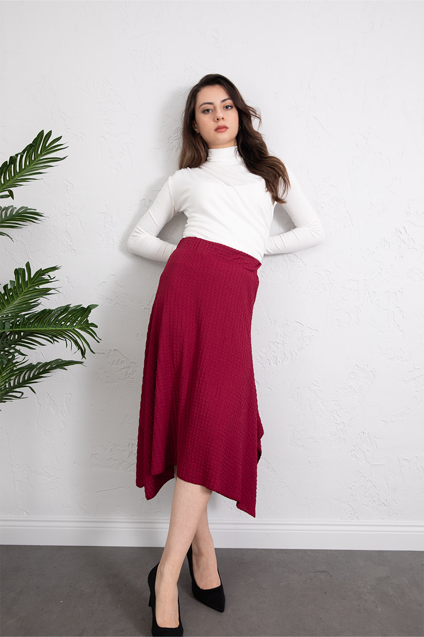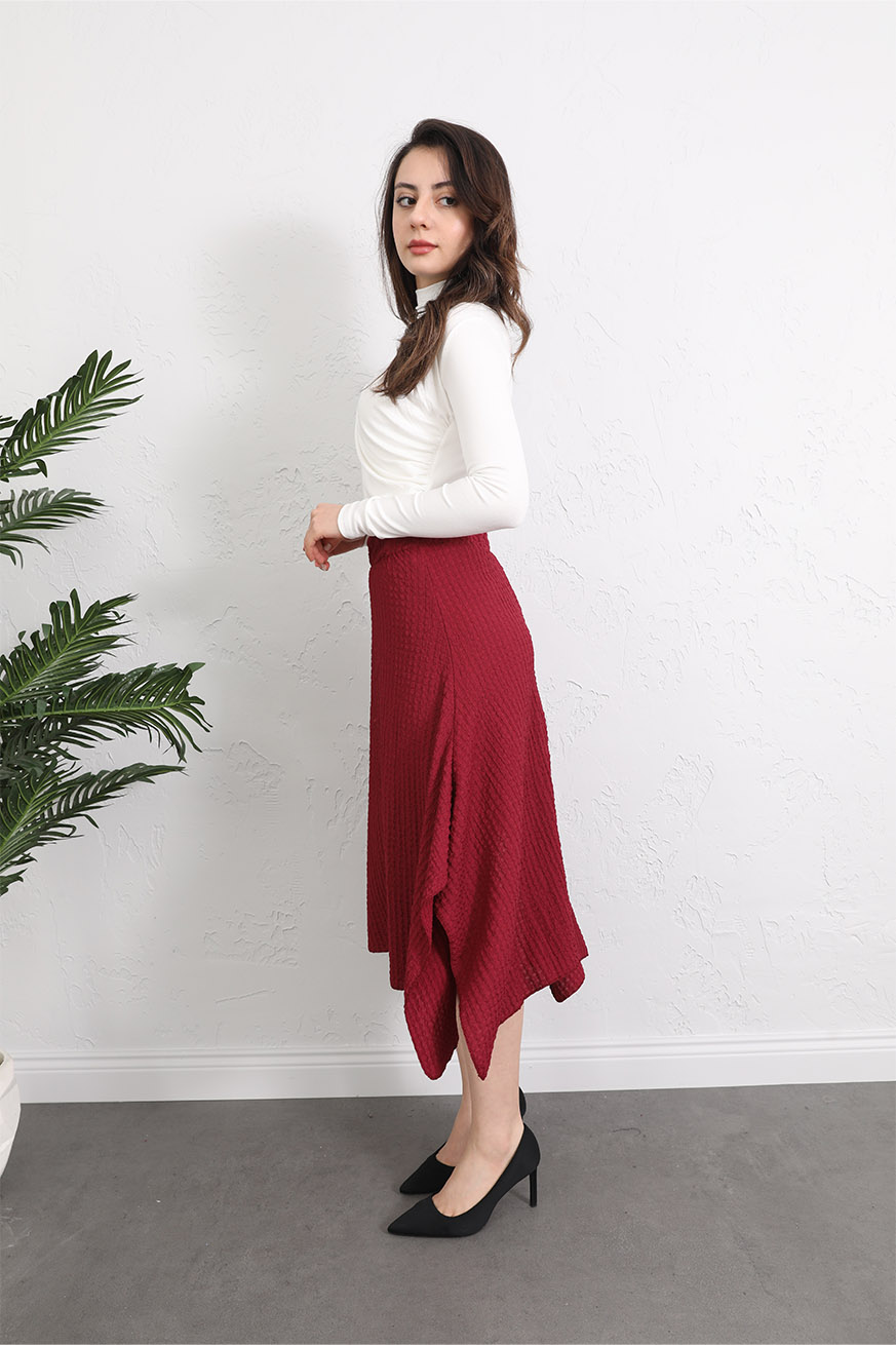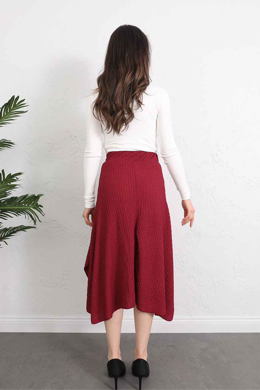 Gofre Kulaklı Asimetrik Etek Bordo - 5160-Bordo
