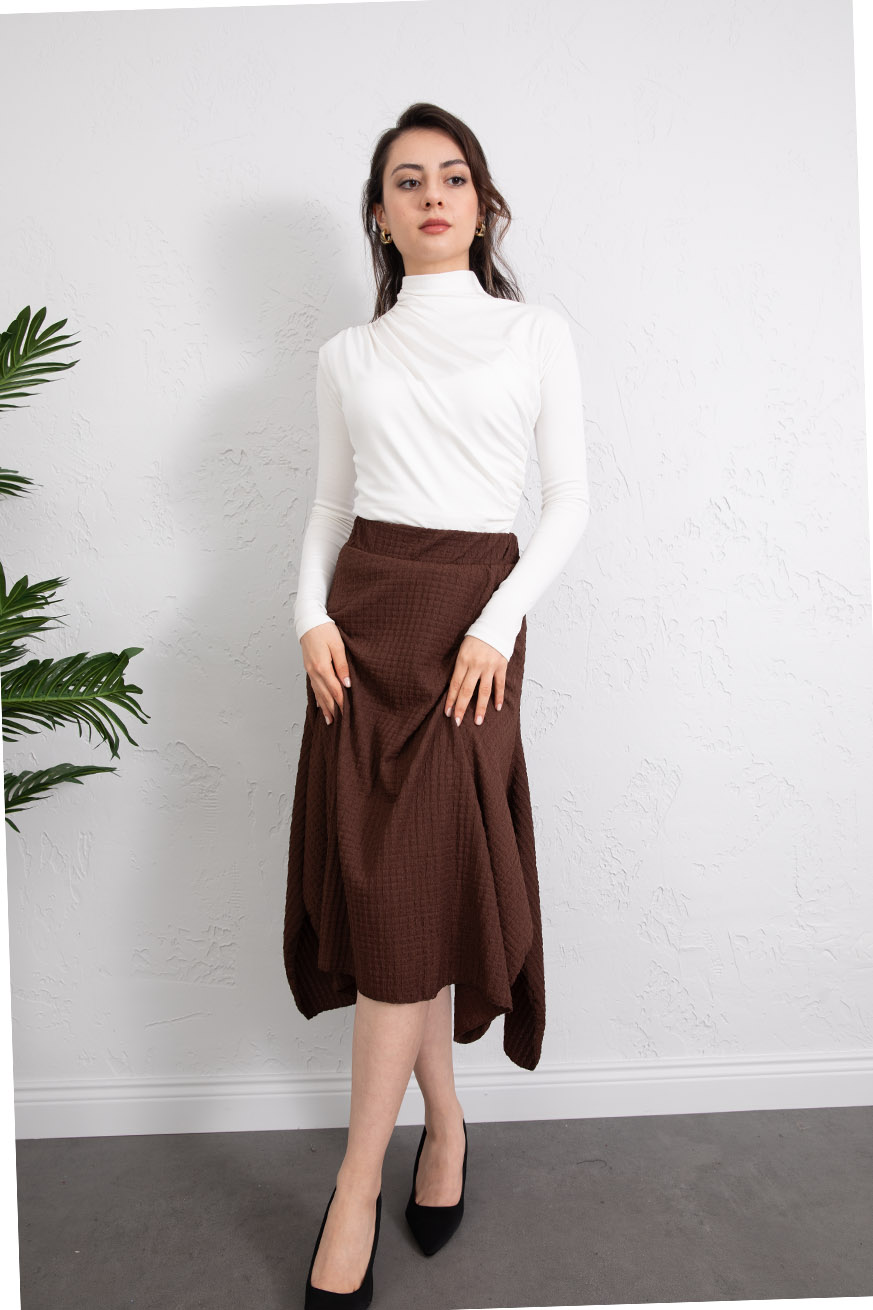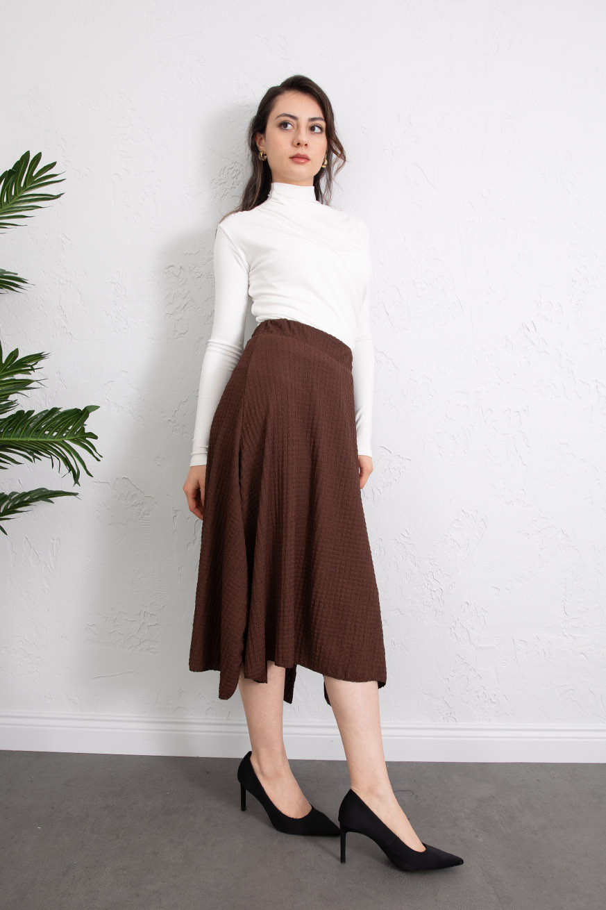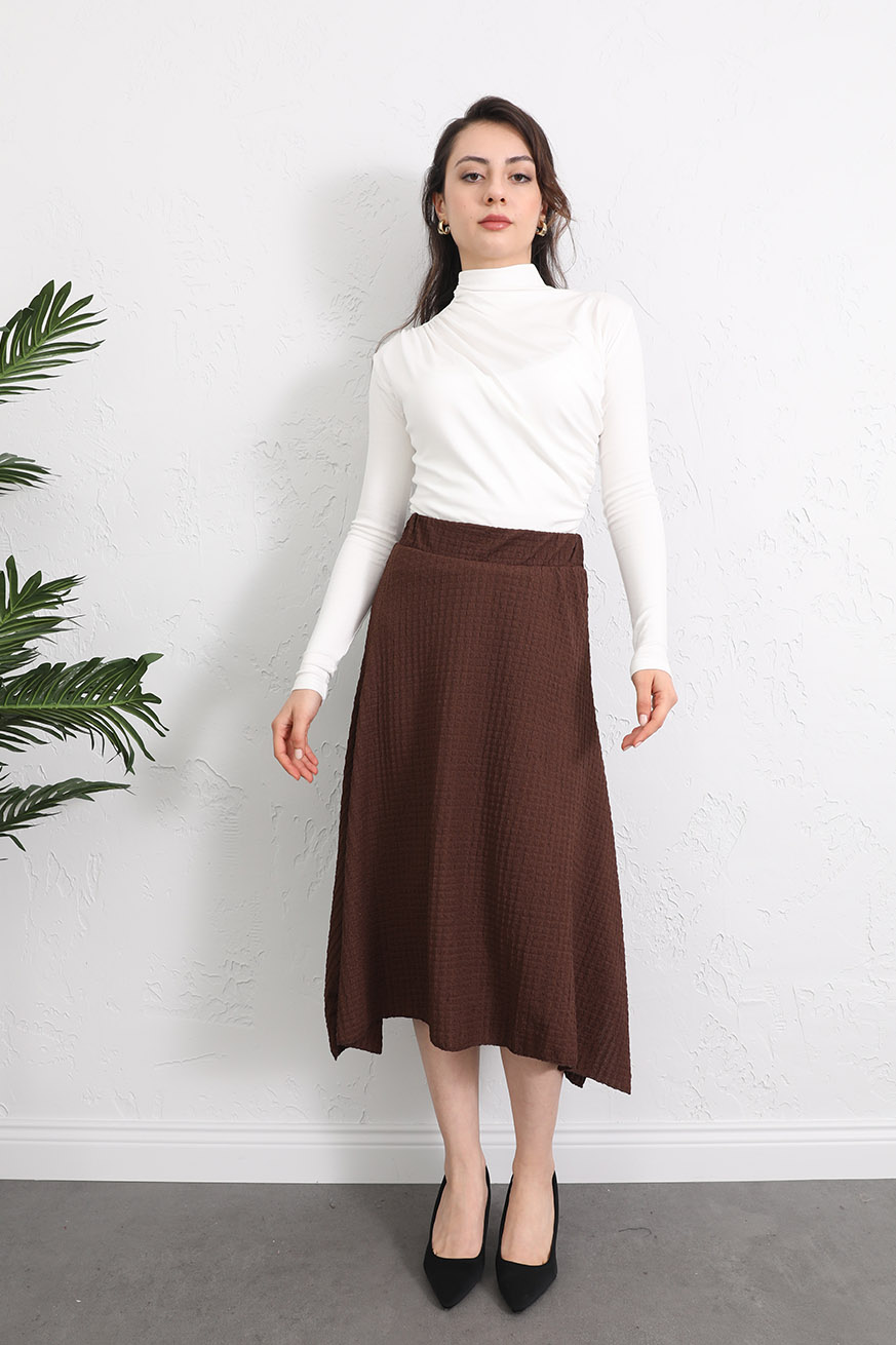 Gofre Kulaklı Asimetrik Etek Kahve - 5160-Kahve