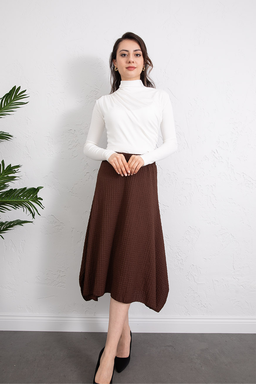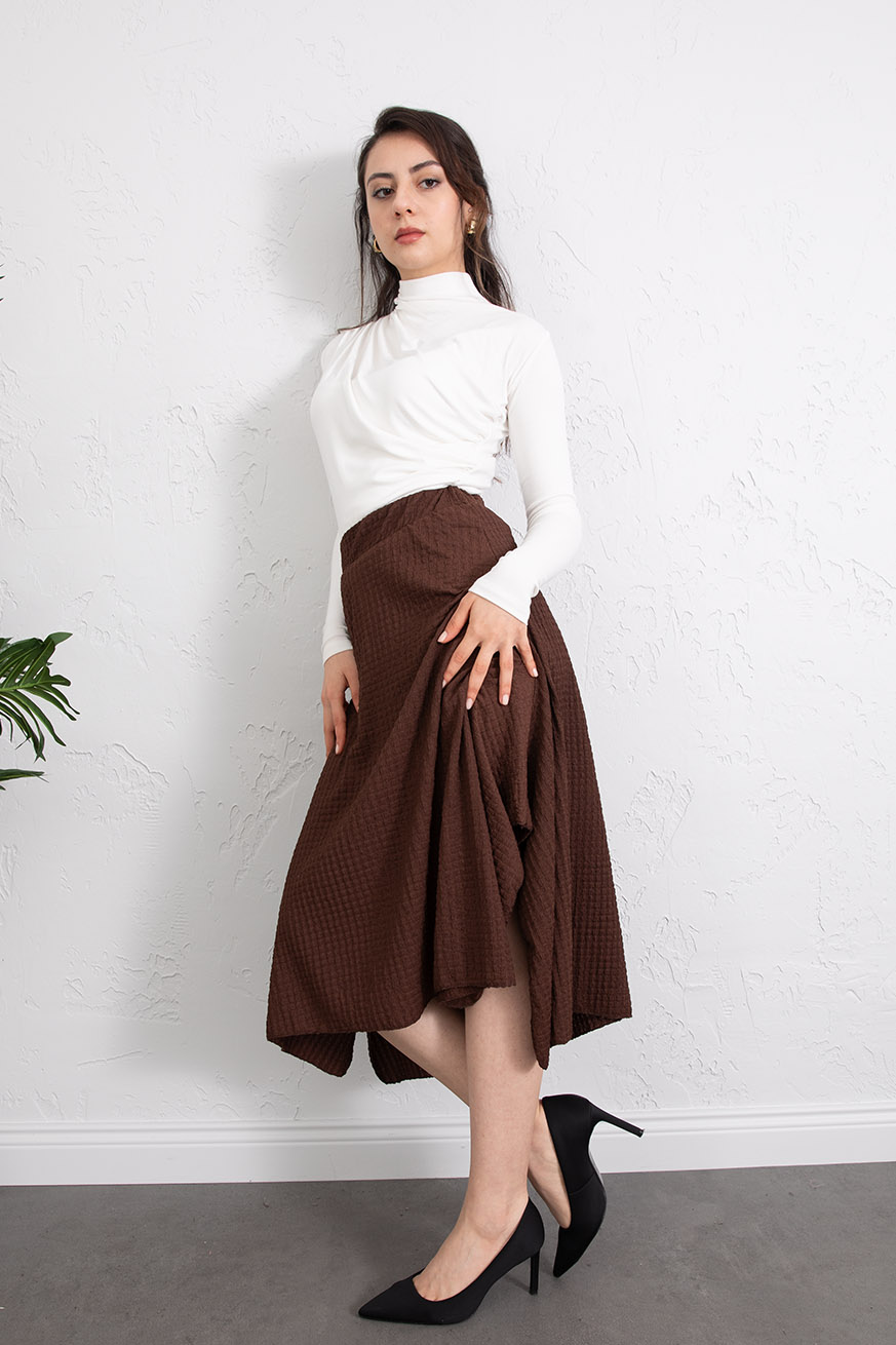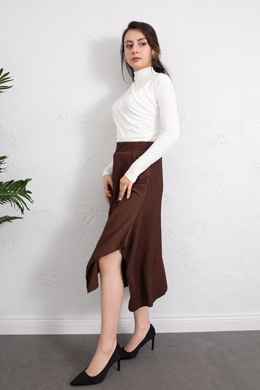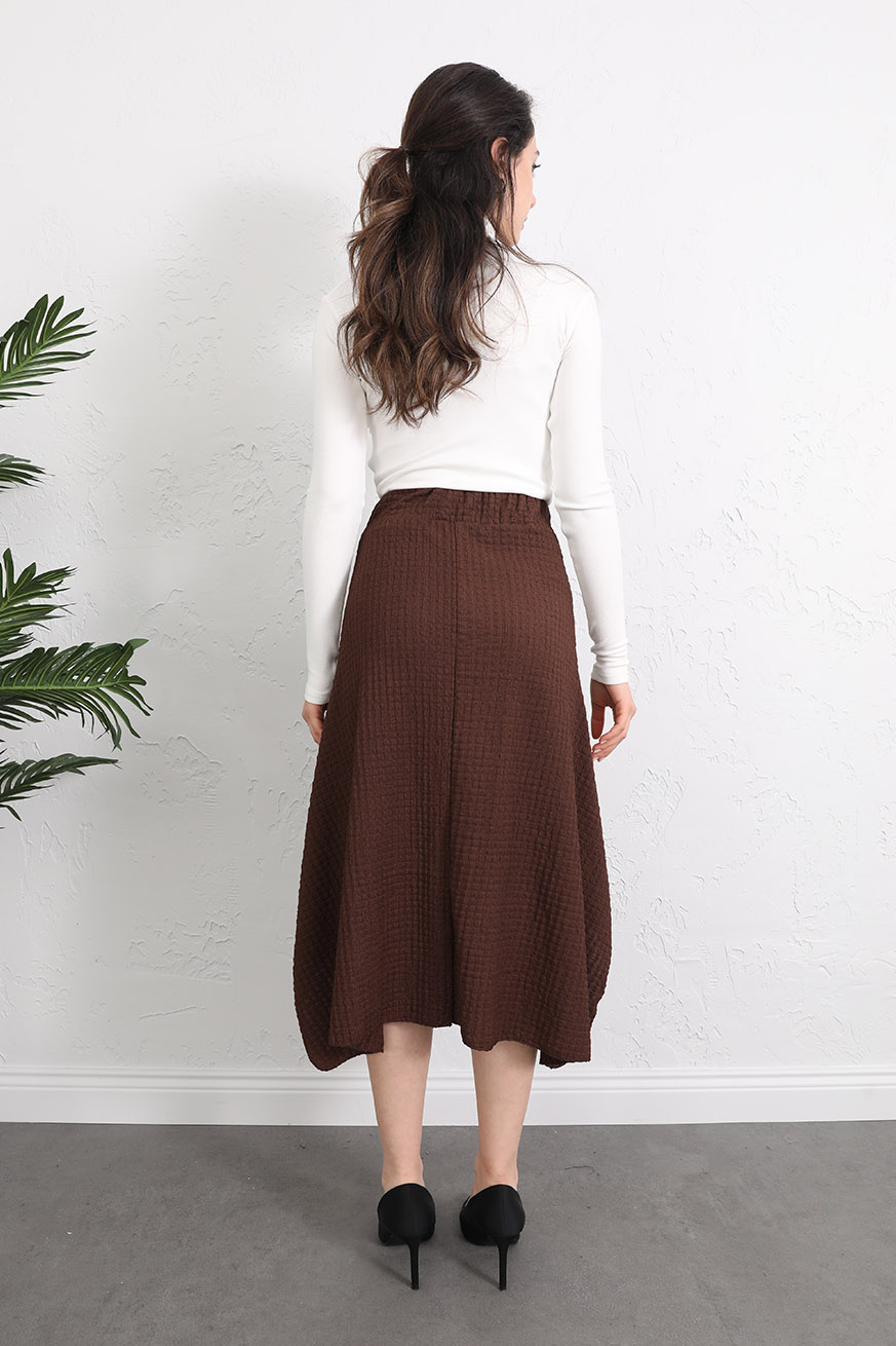 Gofre Kulaklı Asimetrik Etek Kahve - 5160-Kahve