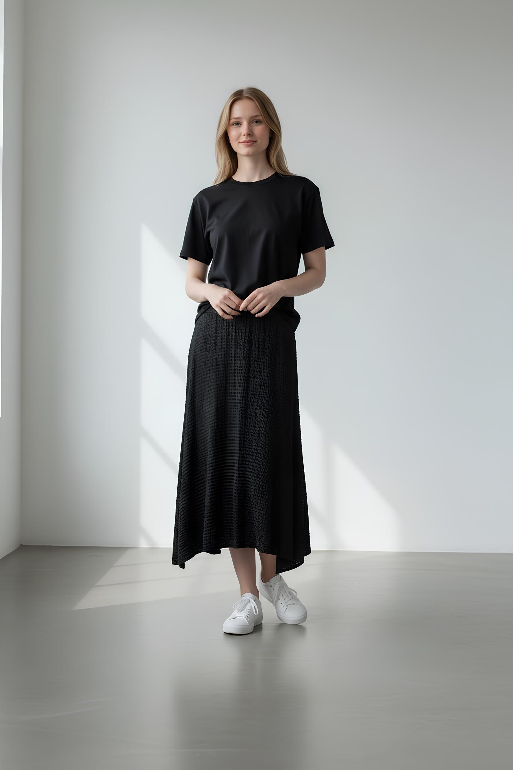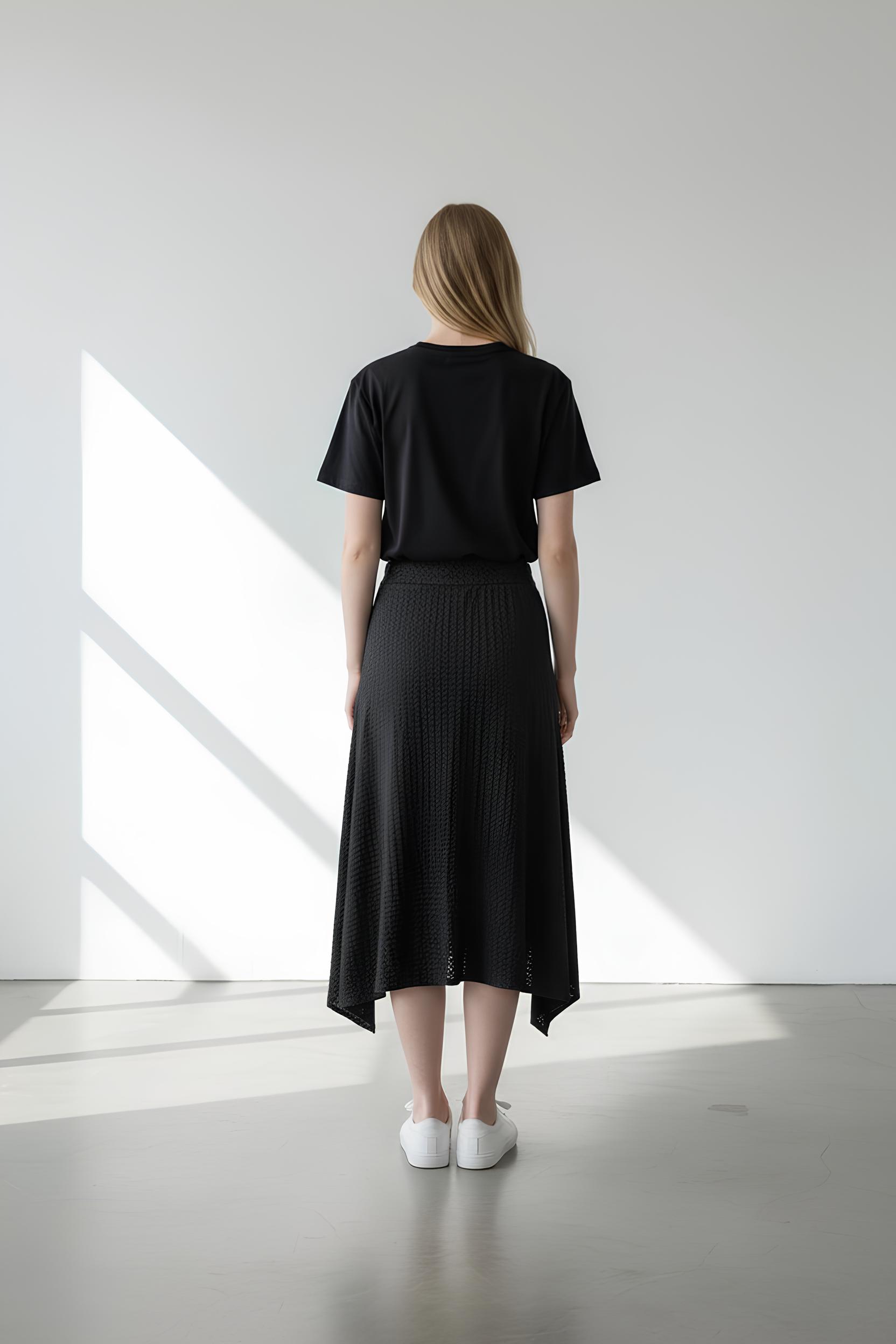Gofre Kulaklı Asimetrik Etek Siyah - 5160-Siyah