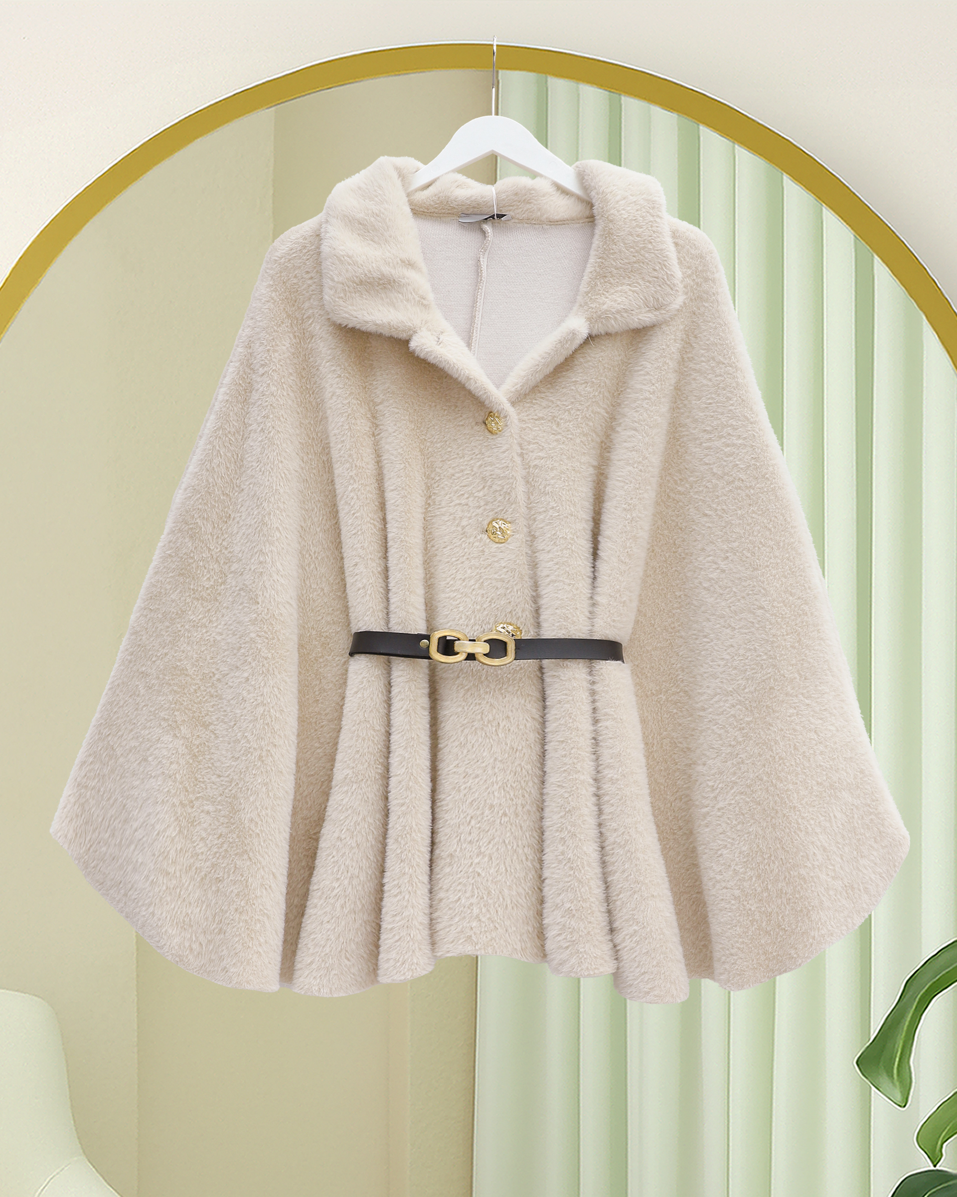 Gold Düğme Detay Kemerli Alcantara Panço -Bej-Bej