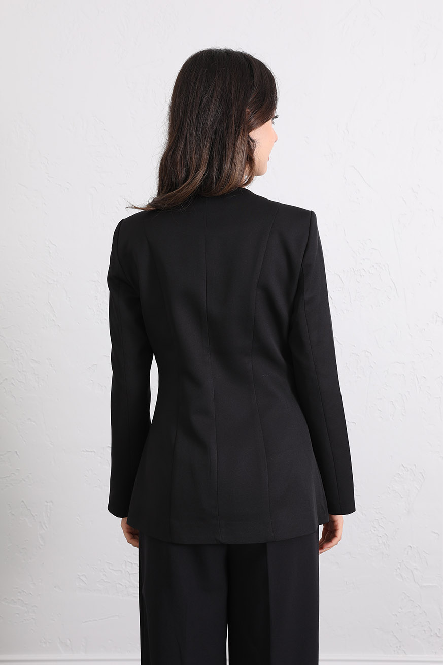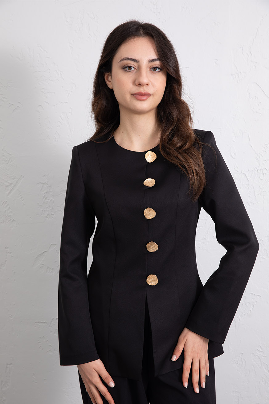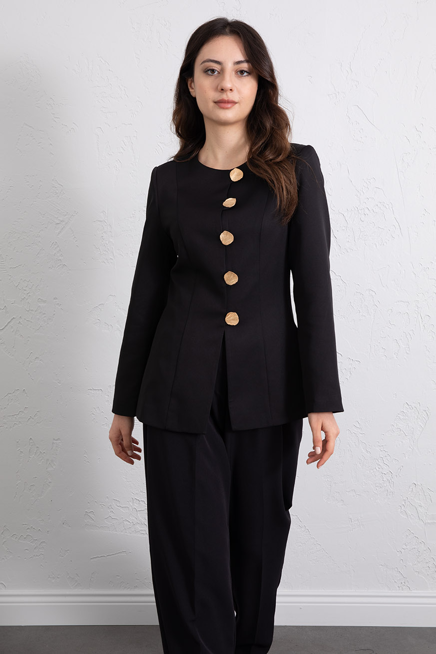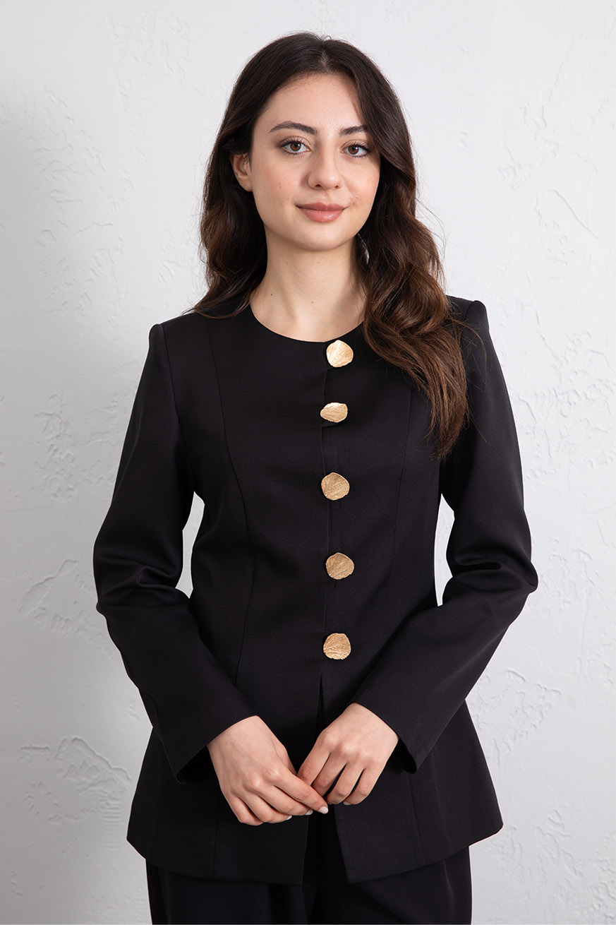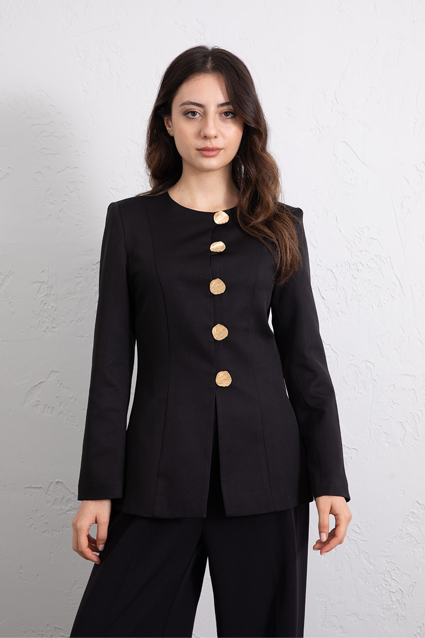 Gold Düğmeli Blazer Ceket Siyah - 1337-Siyah