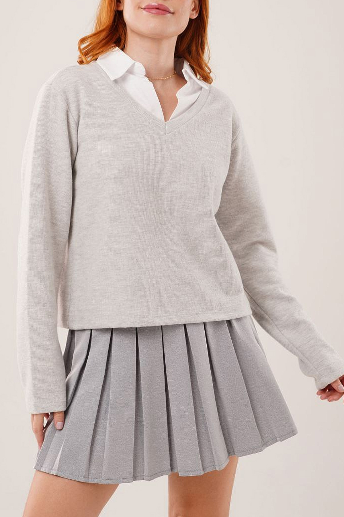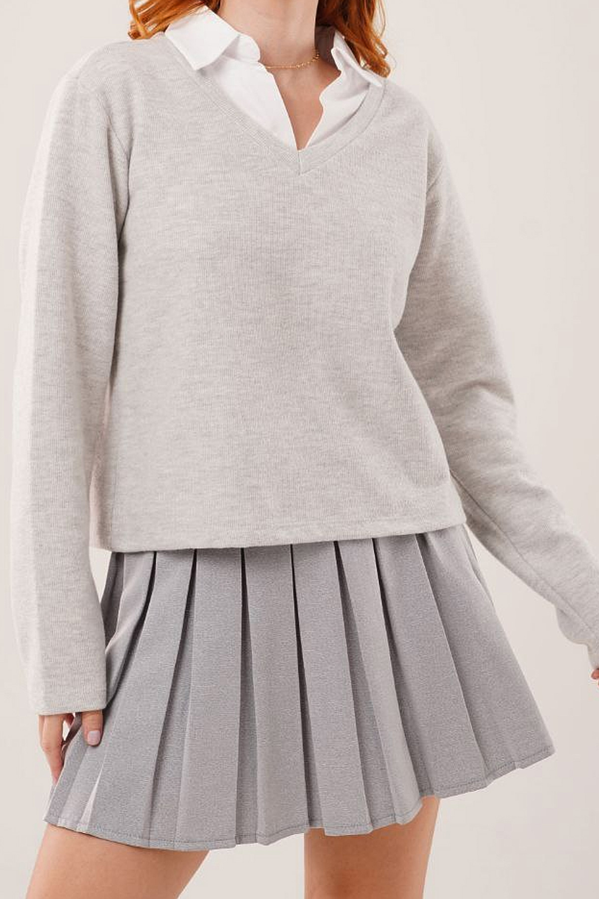 Gömlek Yaka Selanik Sweatshirt-Gri