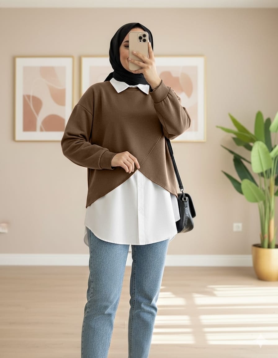 Gömlekli Bolerolu Oysho Üst Takım -Kahve-Kahve