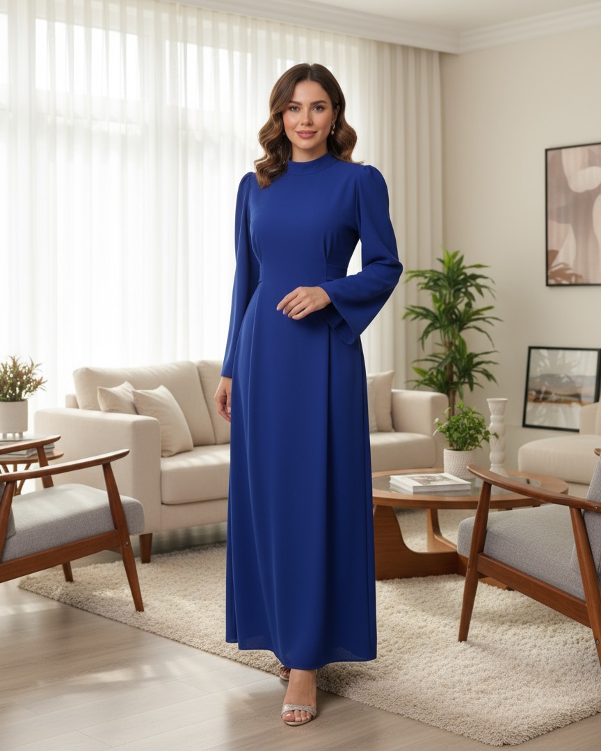 Hakim Yaka Belden Bağlamalı Elbise -Koyu Mavi-Koyu Mavi