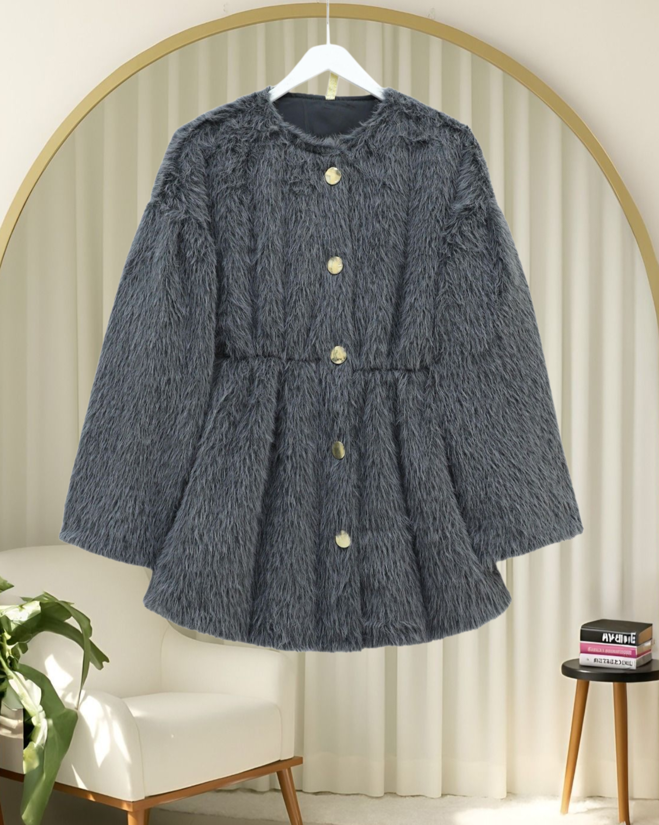 İçi Astarlı Beli Büzgülü Kürklü Ceket -Füme-Füme