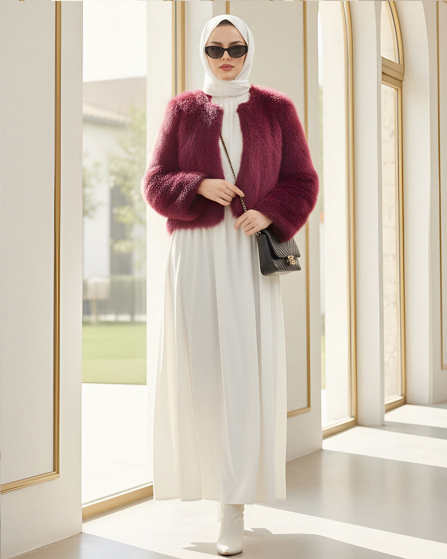 İçi Astarlı Kürklü Kaban -Bordo-Bordo