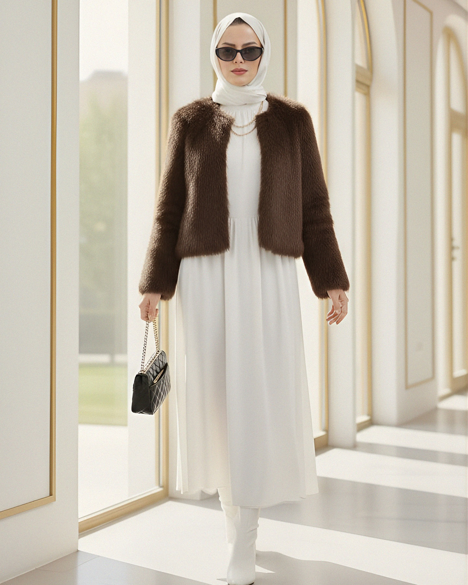 İçi Astarlı Kürklü Kaban -Kahve-Kahve