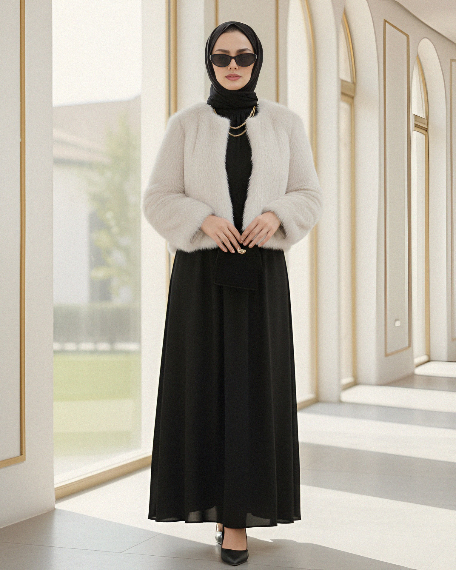 İçi Astarlı Kürklü Kaban -Krem-Krem