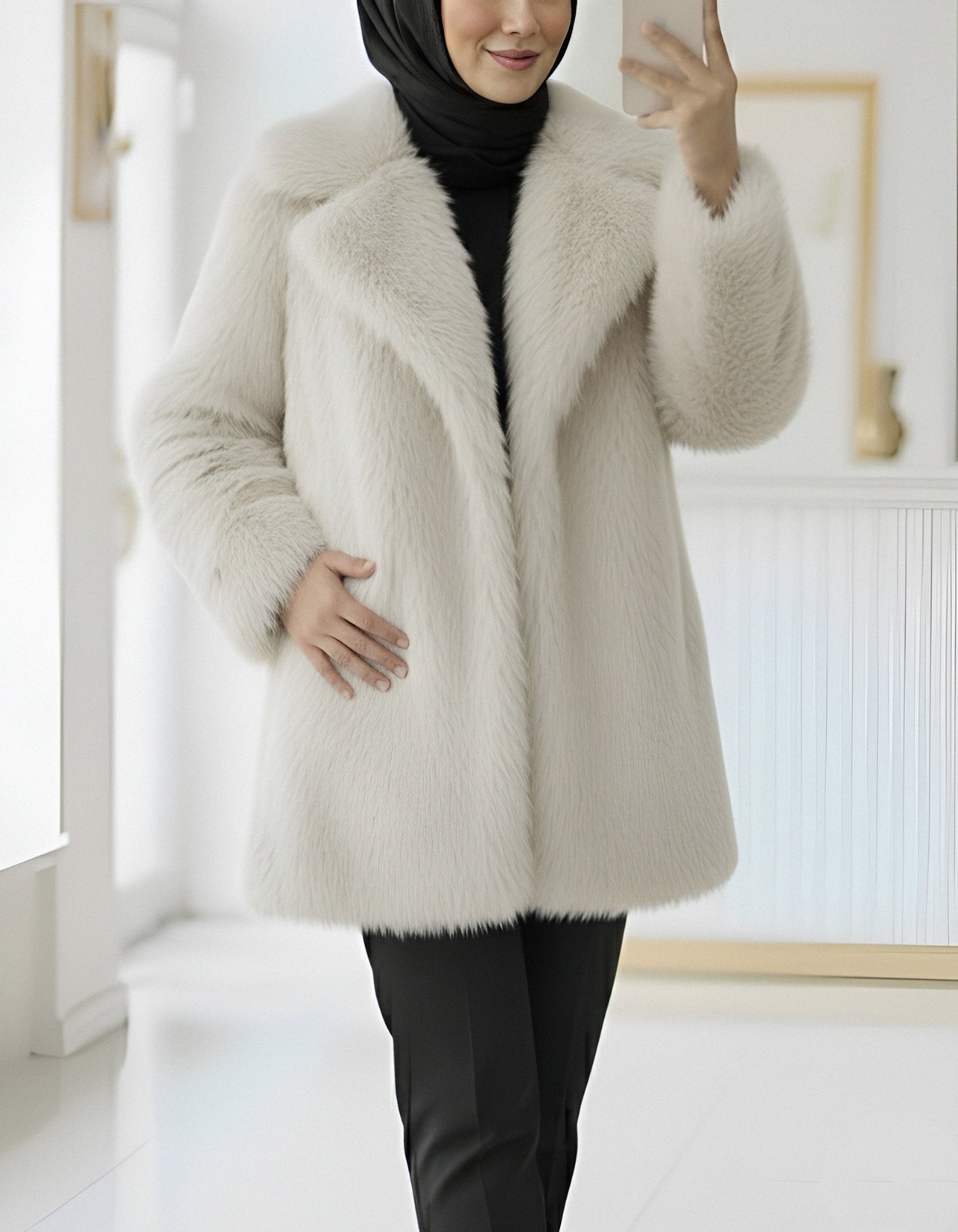 İçi Astarlı Tek Düğmeli Kürklü Ceket -Taş-Taş
