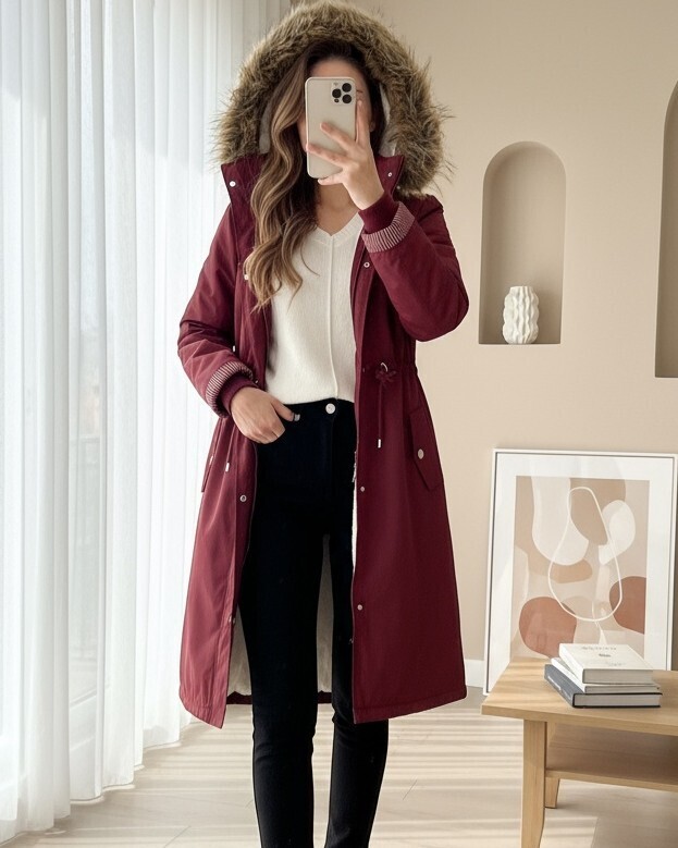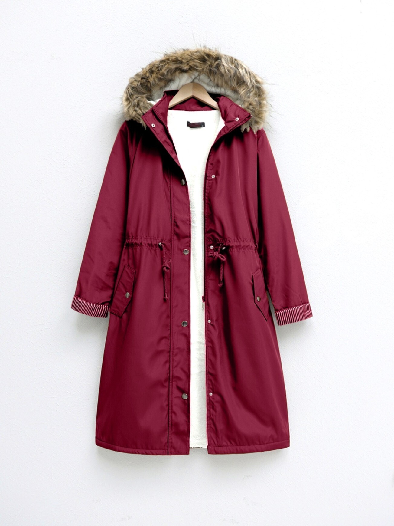 İçi Pelüş Çıkma Ķapşonlu Bondig Mont -Bordo-Bordo
