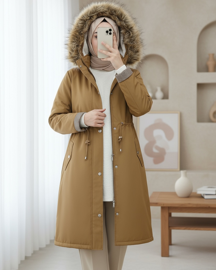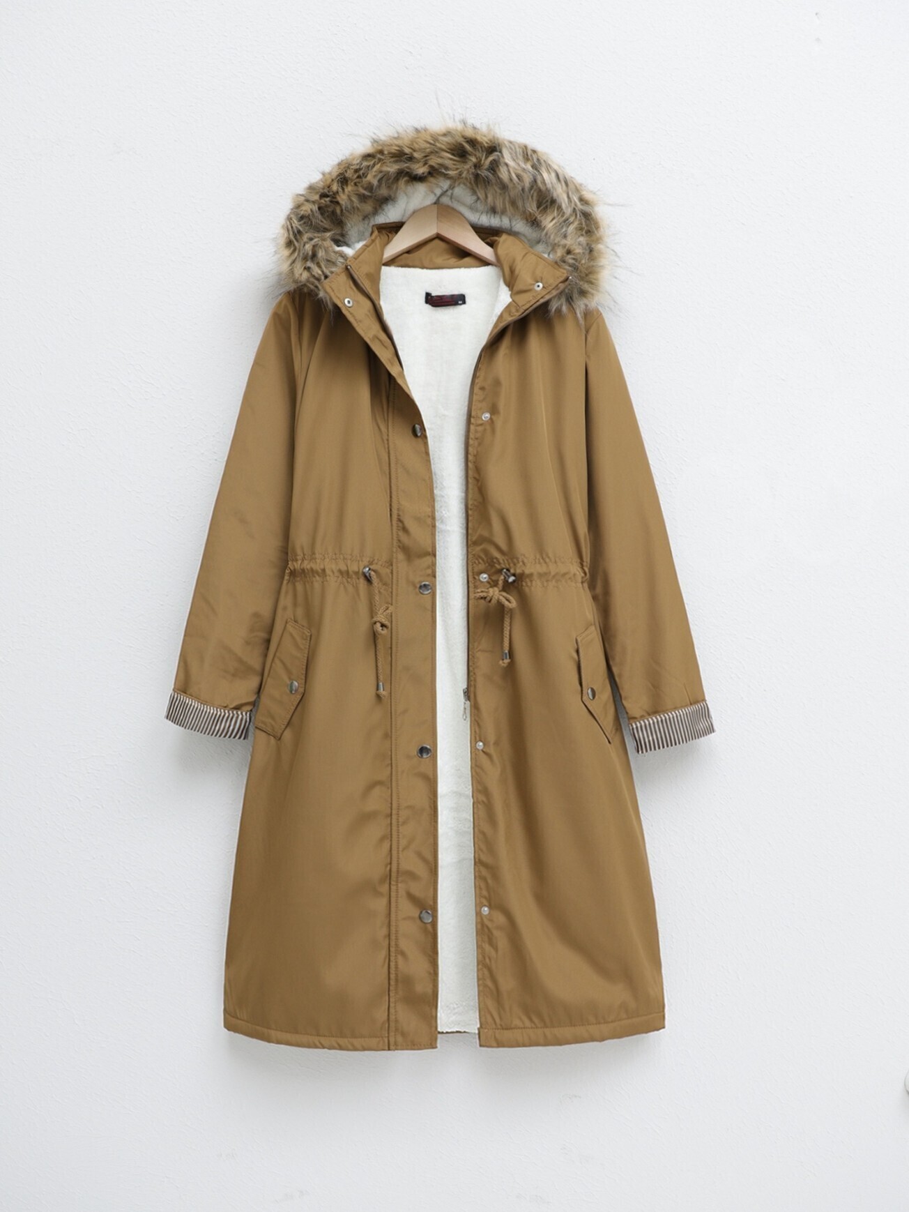 İçi Pelüş Çıkma Ķapşonlu Bondig Mont -Karamel-Karamel