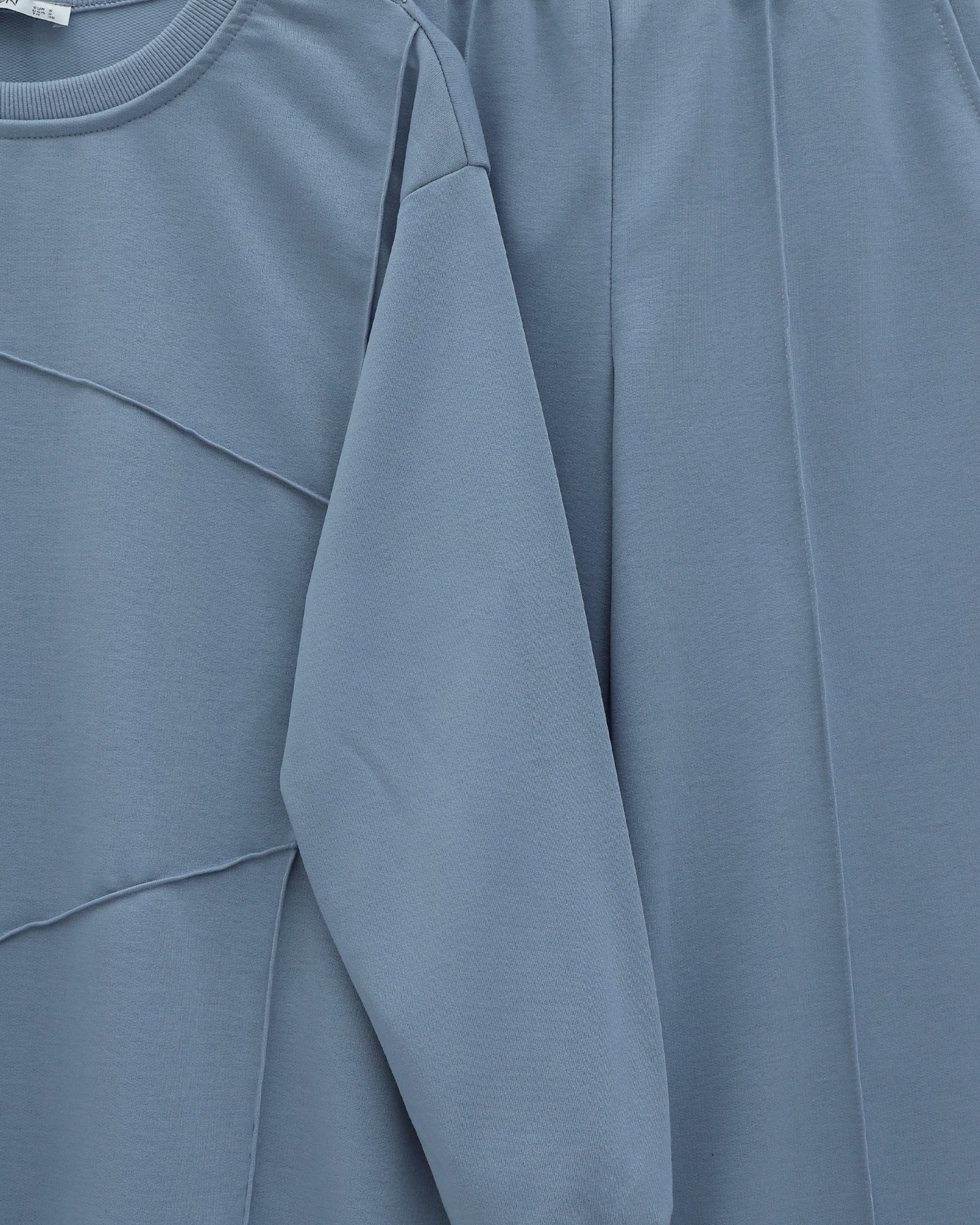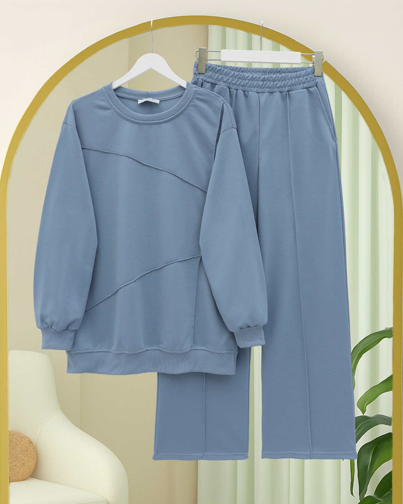 İki İp Çimalı Pantolonlu Penye Takım -Bebe Mavi-Bebe Mavi