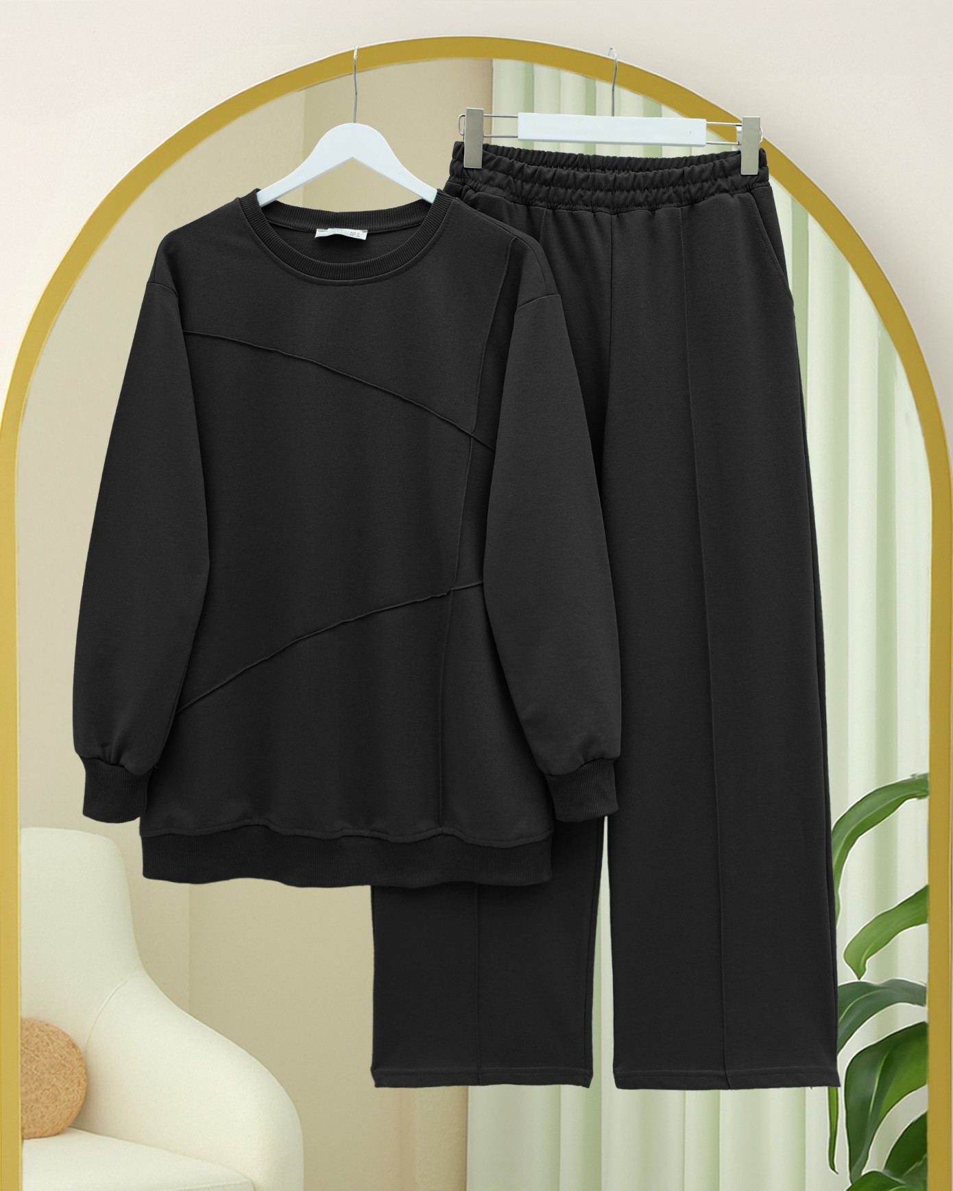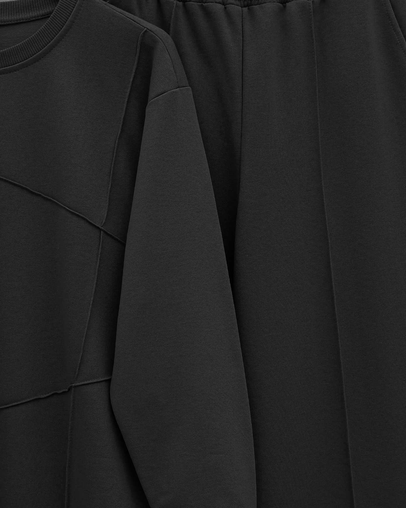 İki İp Çimalı Pantolonlu Penye Takım -Siyah-siyah
