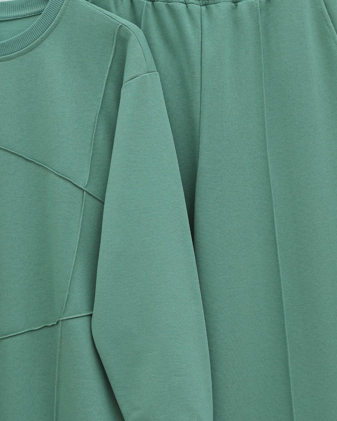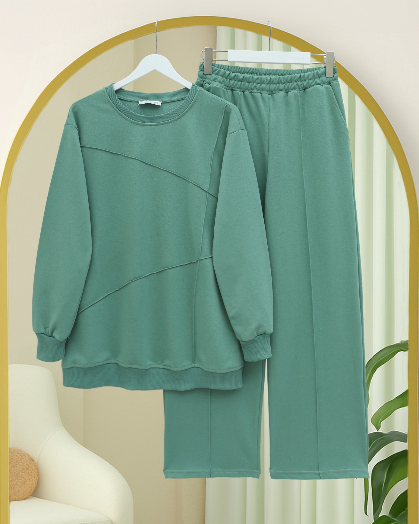İki İp Çimalı Pantolonlu Penye Takım -Su Yeşili-Su Yeşili
