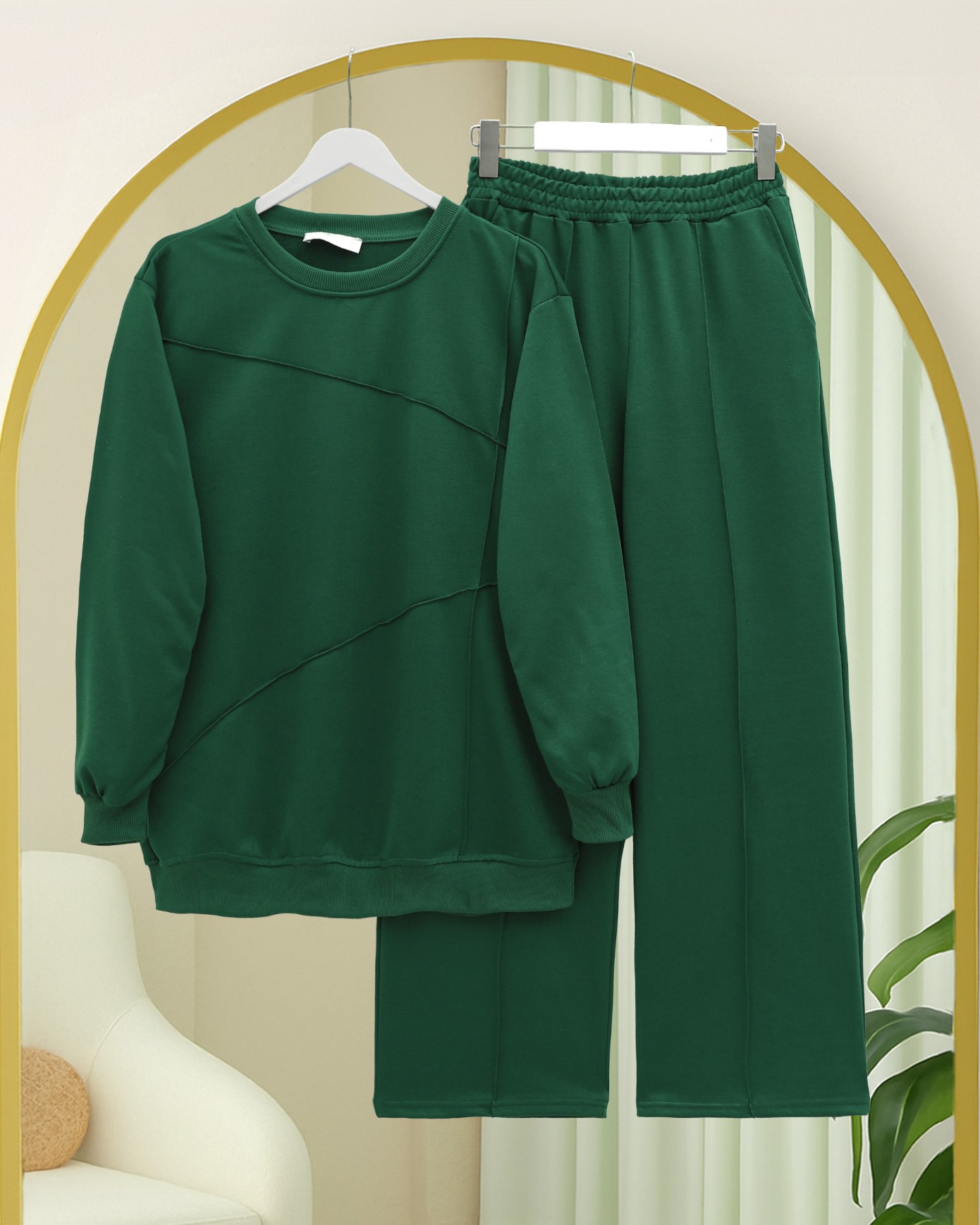 İki İp Çimalı Pantolonlu Penye Takım -Zümrüt-Zümrüt