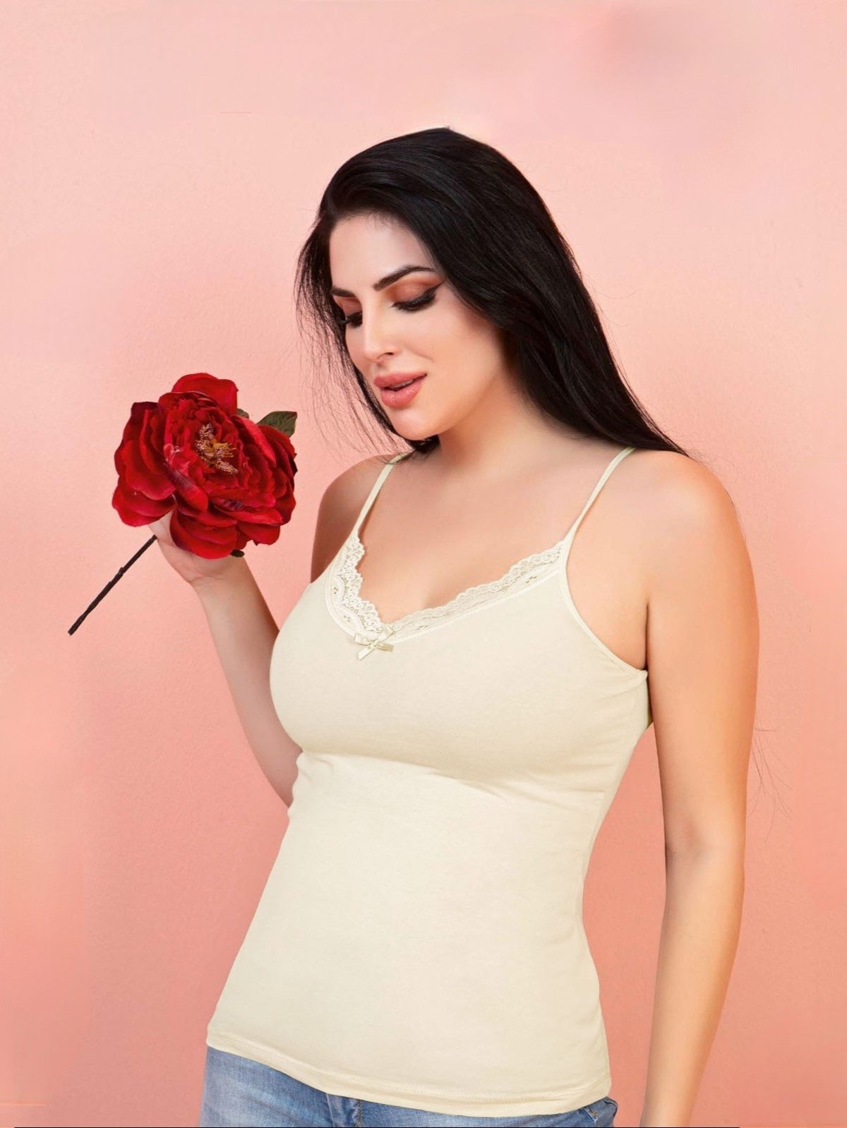 İp Askılı Dantelli Atlet -Ekru-Ekru