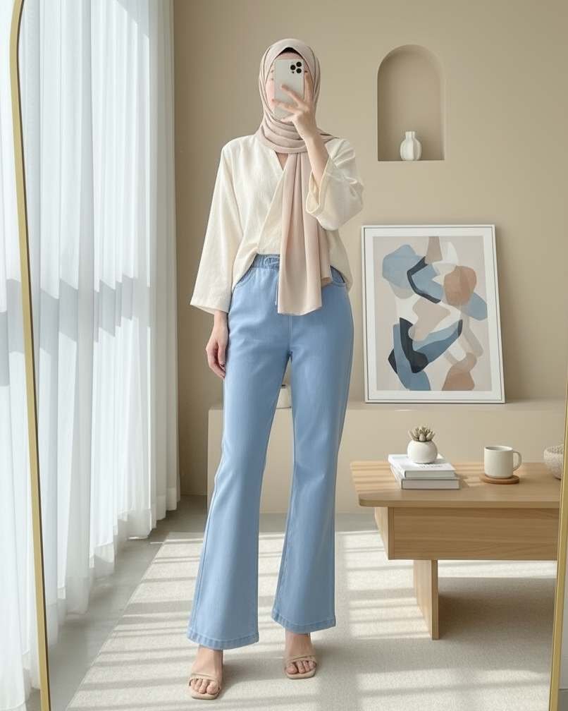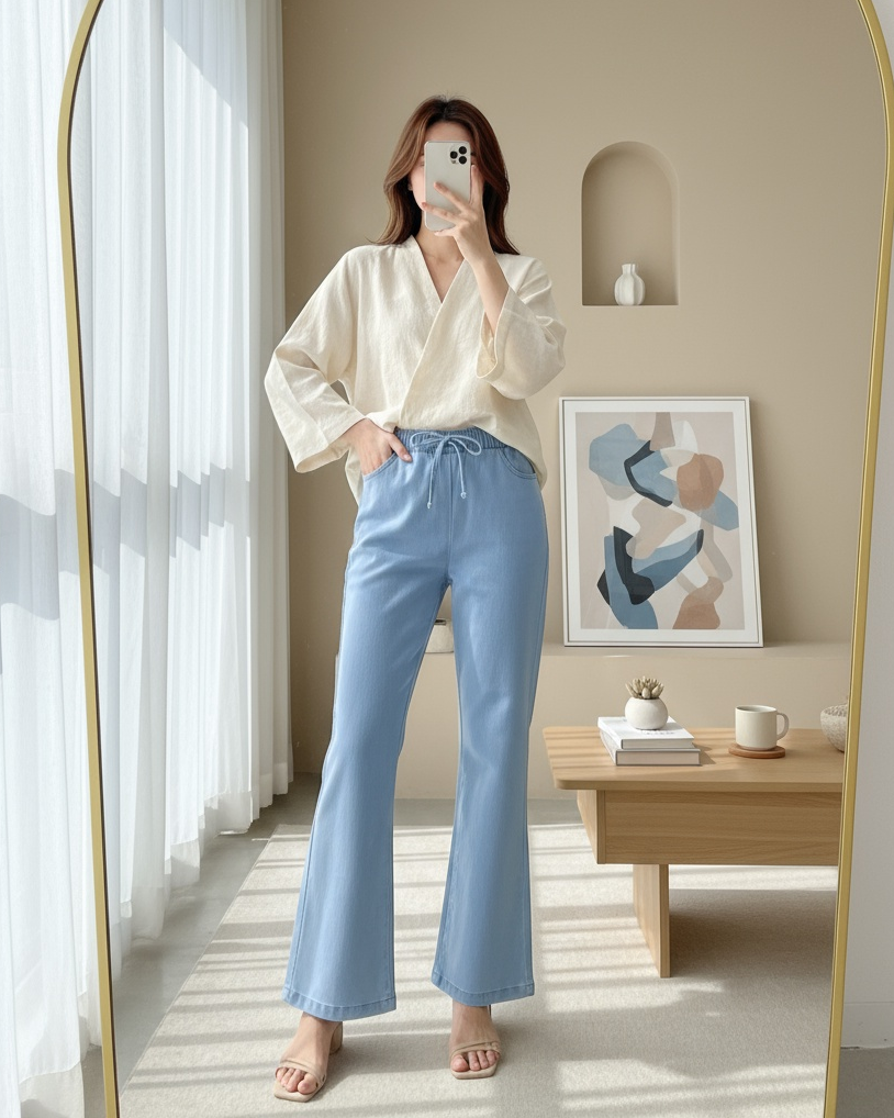 İspanyol Paça Bağcık Detaylı Kot Pantolon -Açık Mavi-Açık Mavi