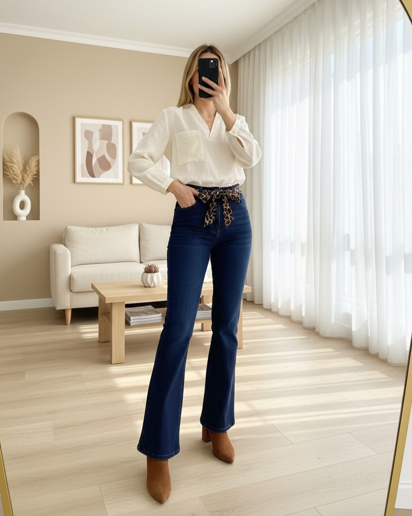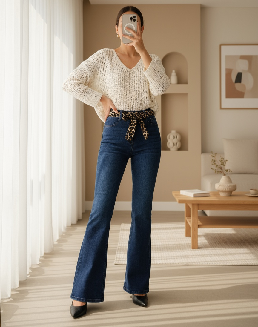 İspanyol Paça Fular Detaylı Kot Pntolon -İndigo-İndigo