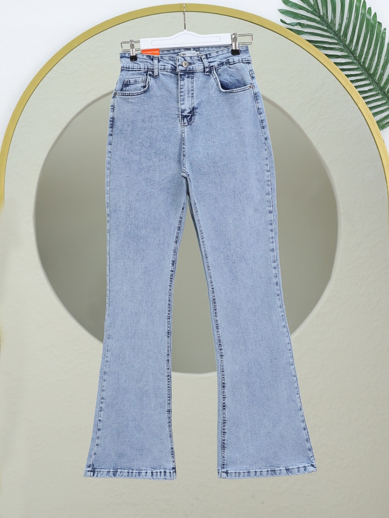 İspanyol Paça Yüksek Bel Kot Pantolon -Buz Mavi-Buz Mavi