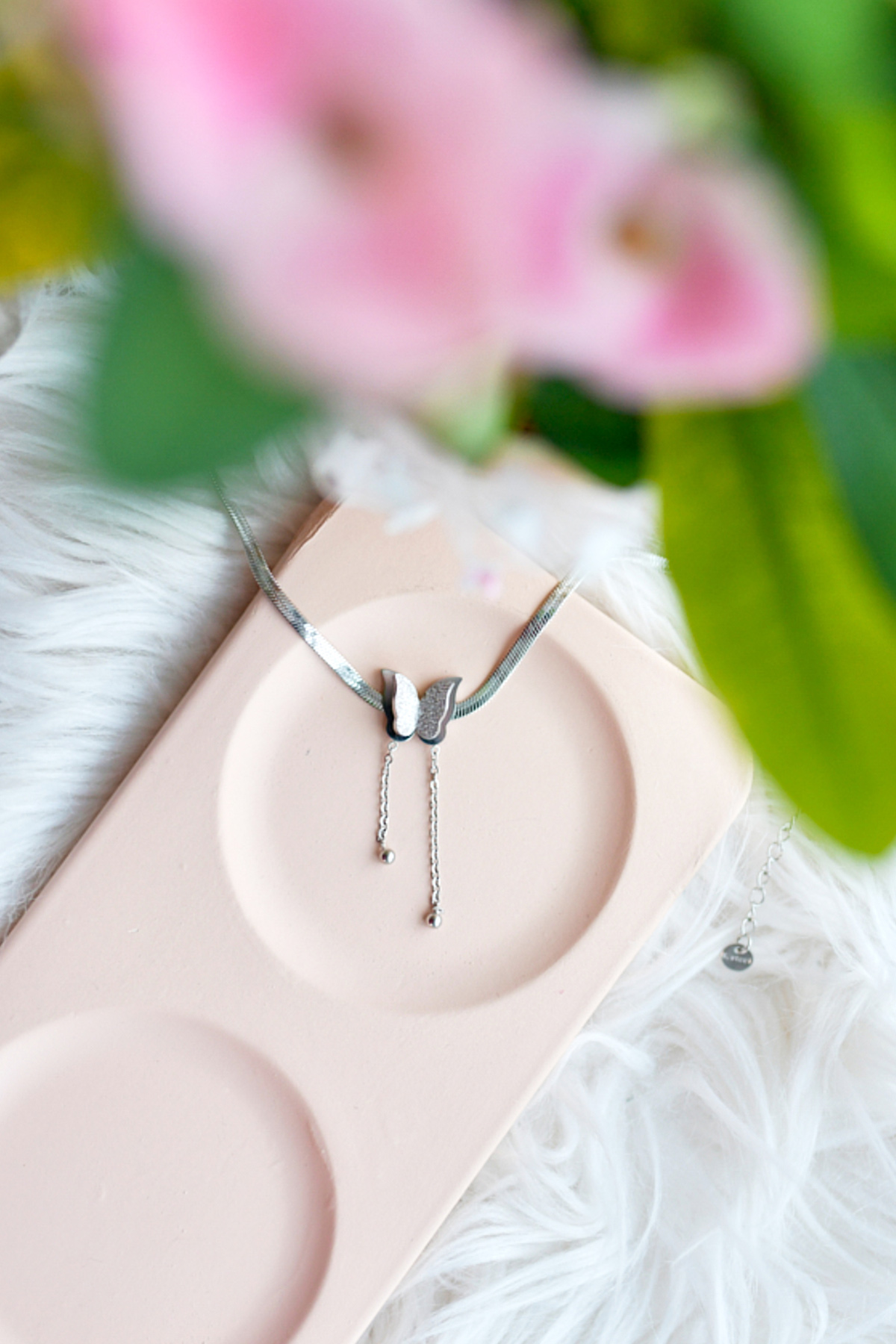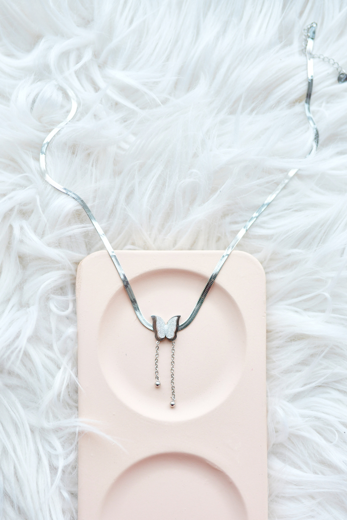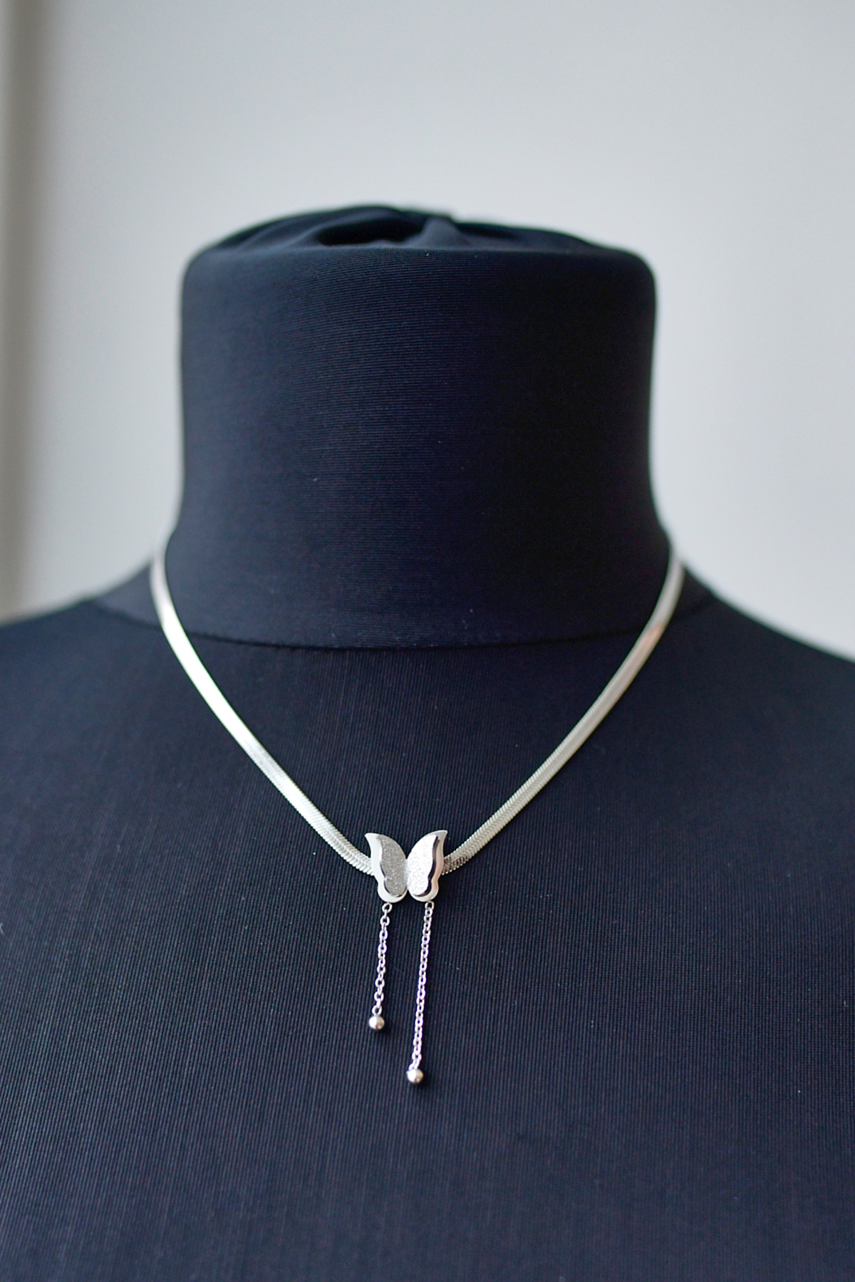 İtalyan Zincir Kelebek Model Çelik Kolye-Gümüş