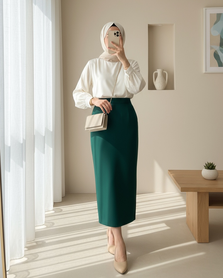 İthal Krep Kalem Etek -Zümrüt-Zümrüt