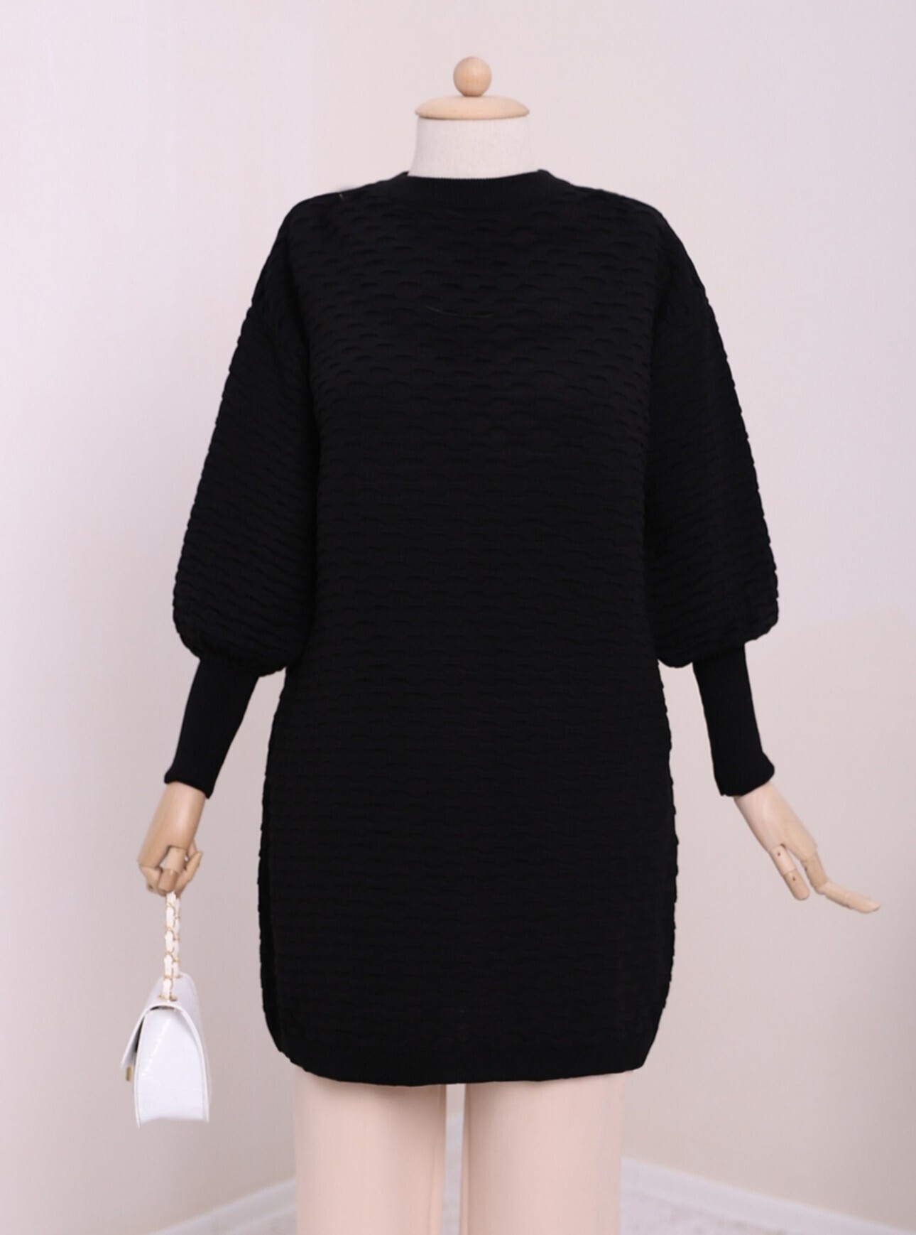 Kabartma Desen Triko Tunik -Siyah-Siyah
