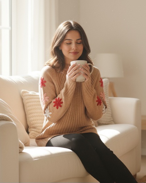 Kabartma İşlemeli Arkası Uzun Kışlık Triko Tunik -Vizon-Vizon