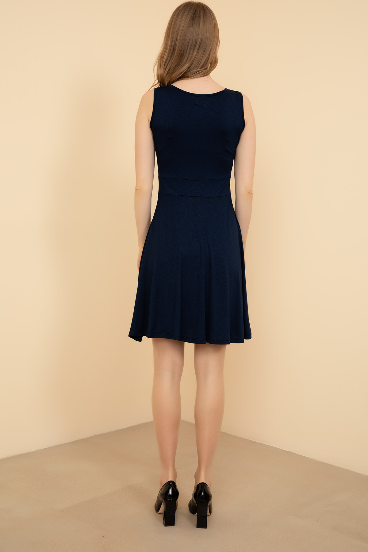 Kalın Askılı Kısa Elbise-Lacivert