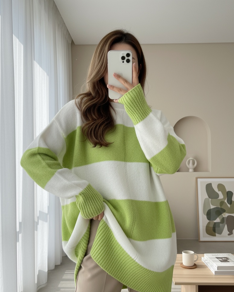 Kalın Çizgili Triko Tunik -F.Yeşili-F.Yeşili