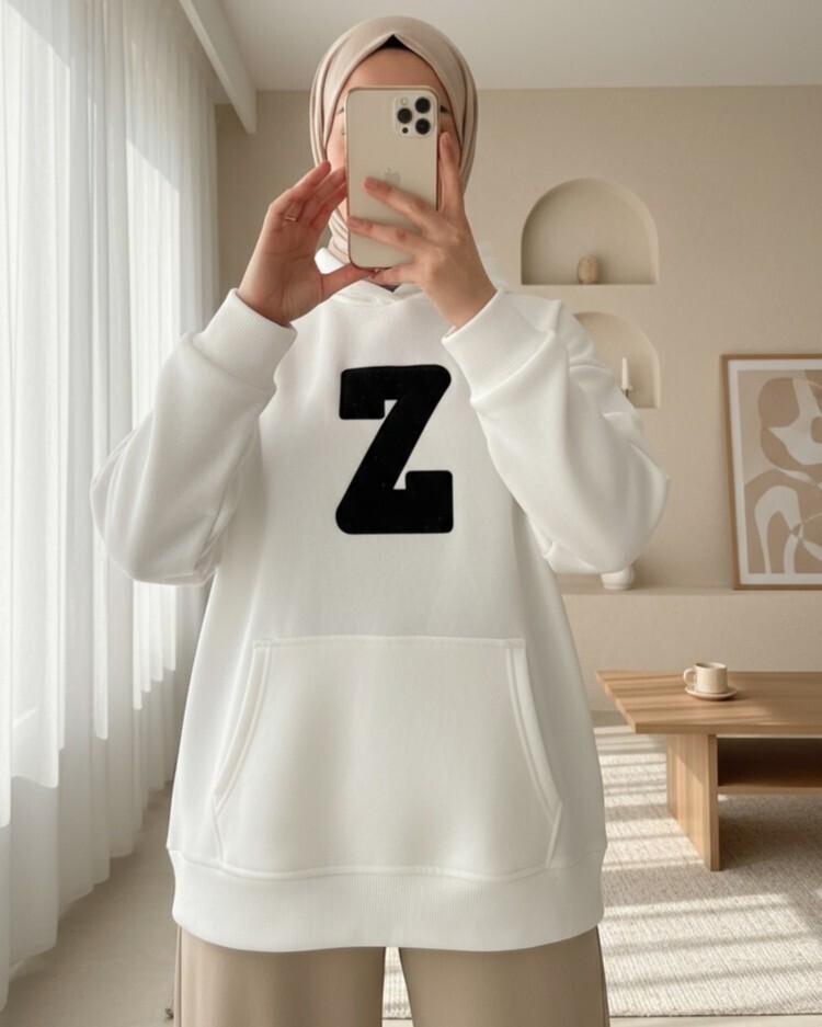 Kanguru Cepli Armalı Kapşonlu Polar Sweat -Beyaz-Beyaz