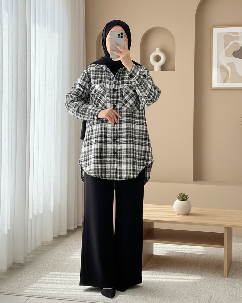 Kapaklı Cepli Tüvit Gömlek -Haki-Haki