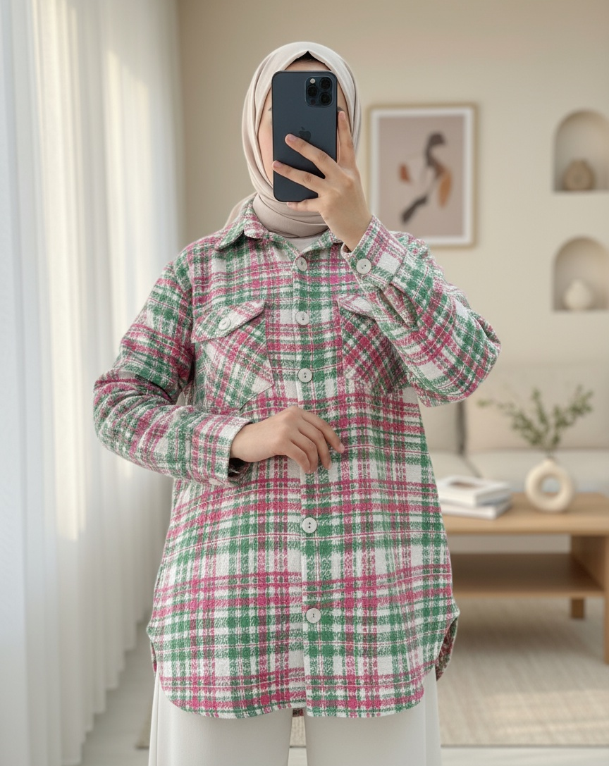 Kapaklı Cepli Tüvit Gömlek -Pembe-Pembe