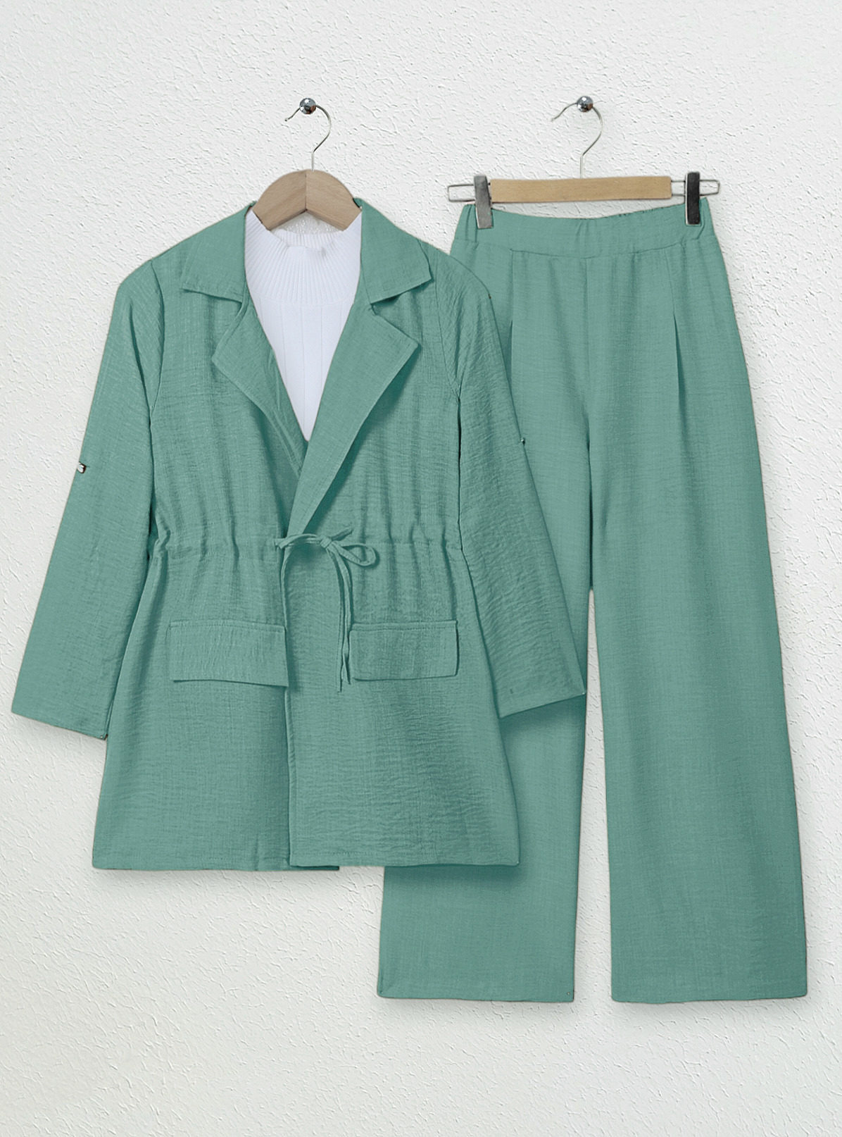 Kapaklı Tünel Köprülü Ceketli Keten Takım -Mint-Mint