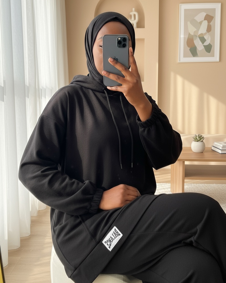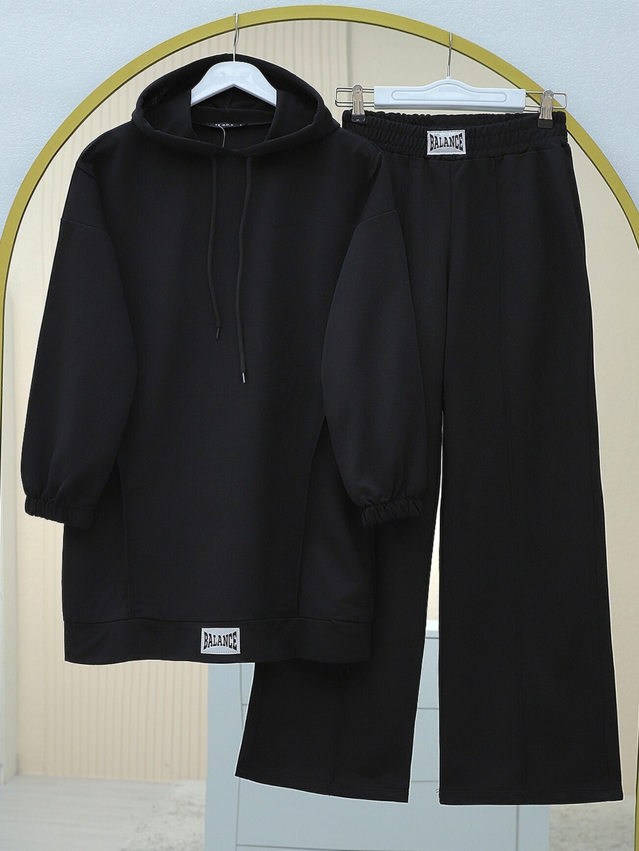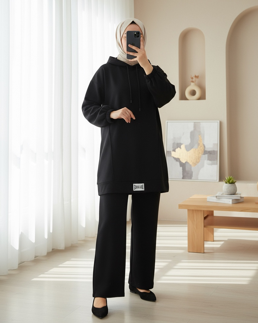 Kapşonlu Arma Detaylı Penye Takım -Siyah-Siyah