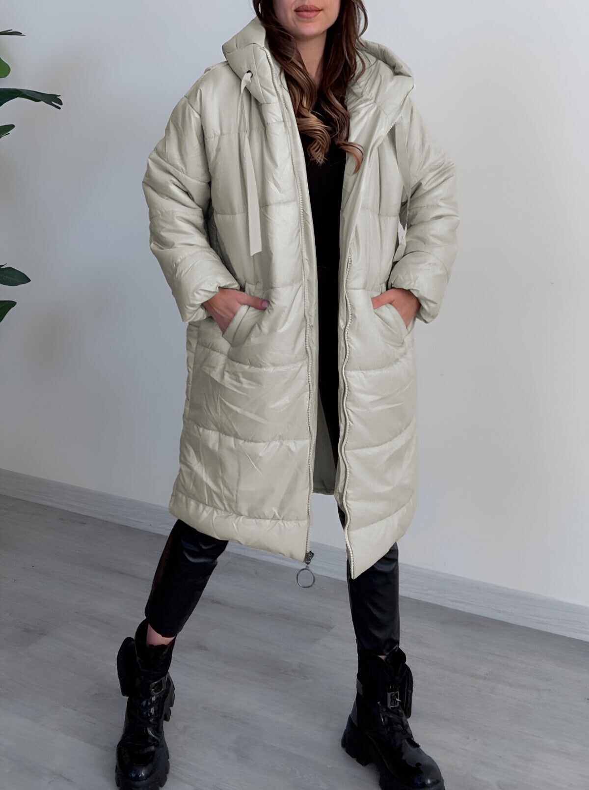 Kapşonlu Bağcık Detaylı Fermuarlı Şişme Mont -Taş-Taş