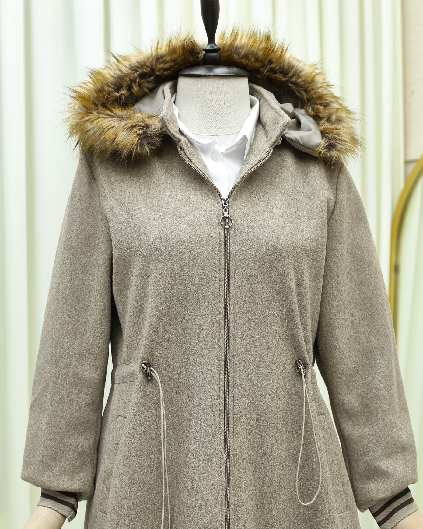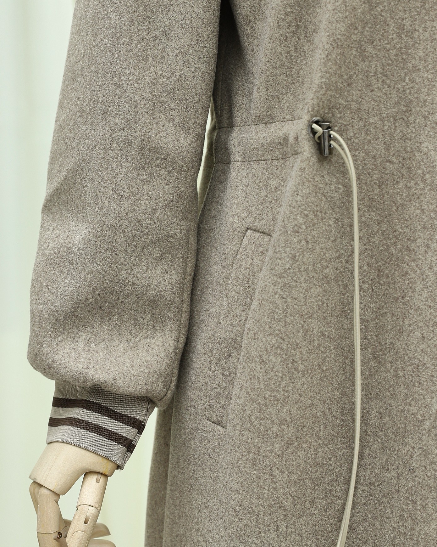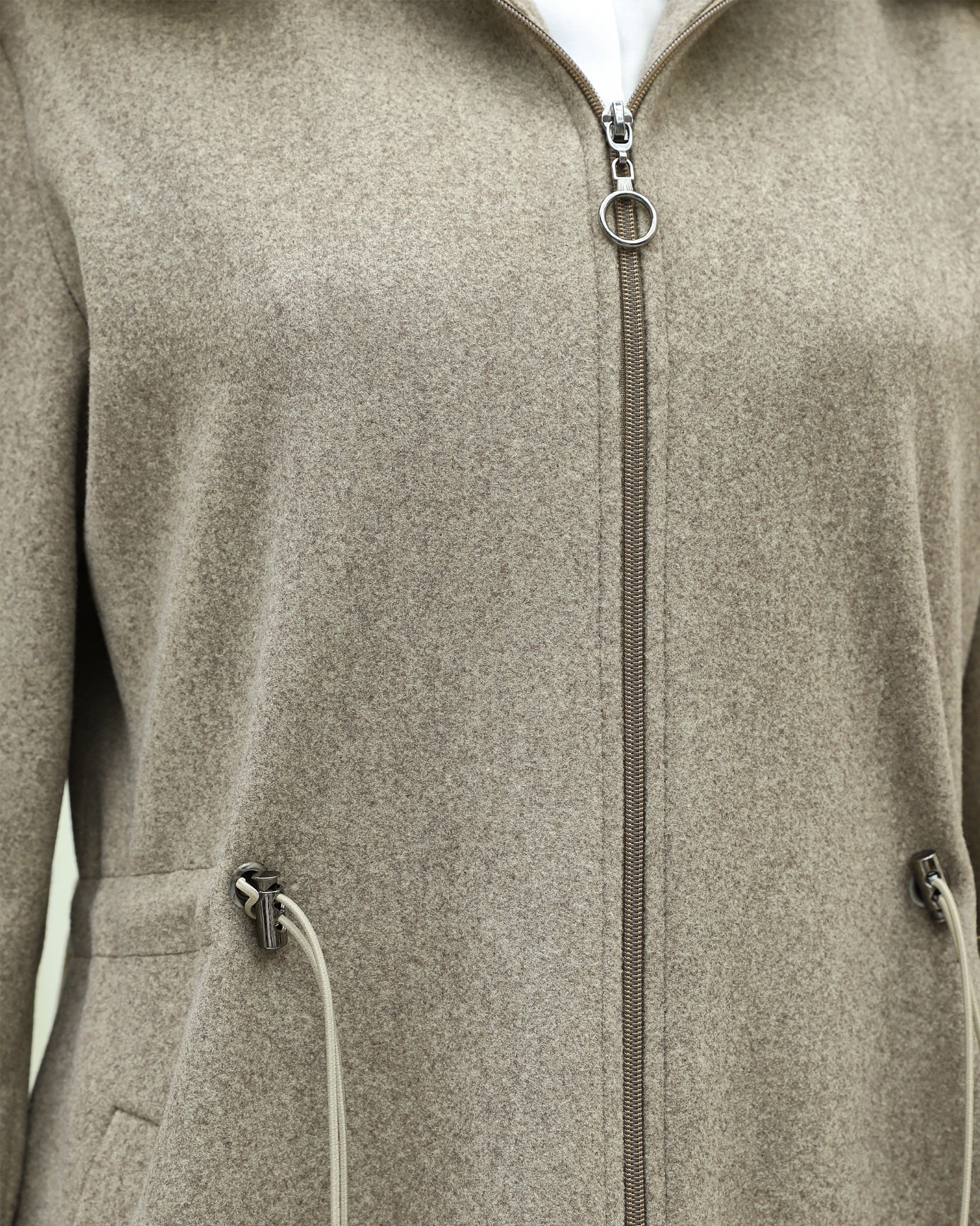 Kapşonlu Beli Lastikli Cepli Kaşe Kaban -Taş-Taş