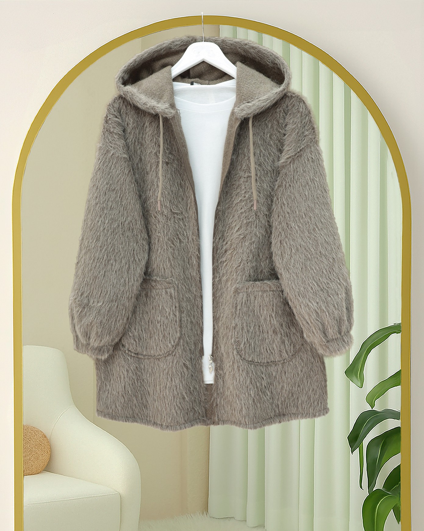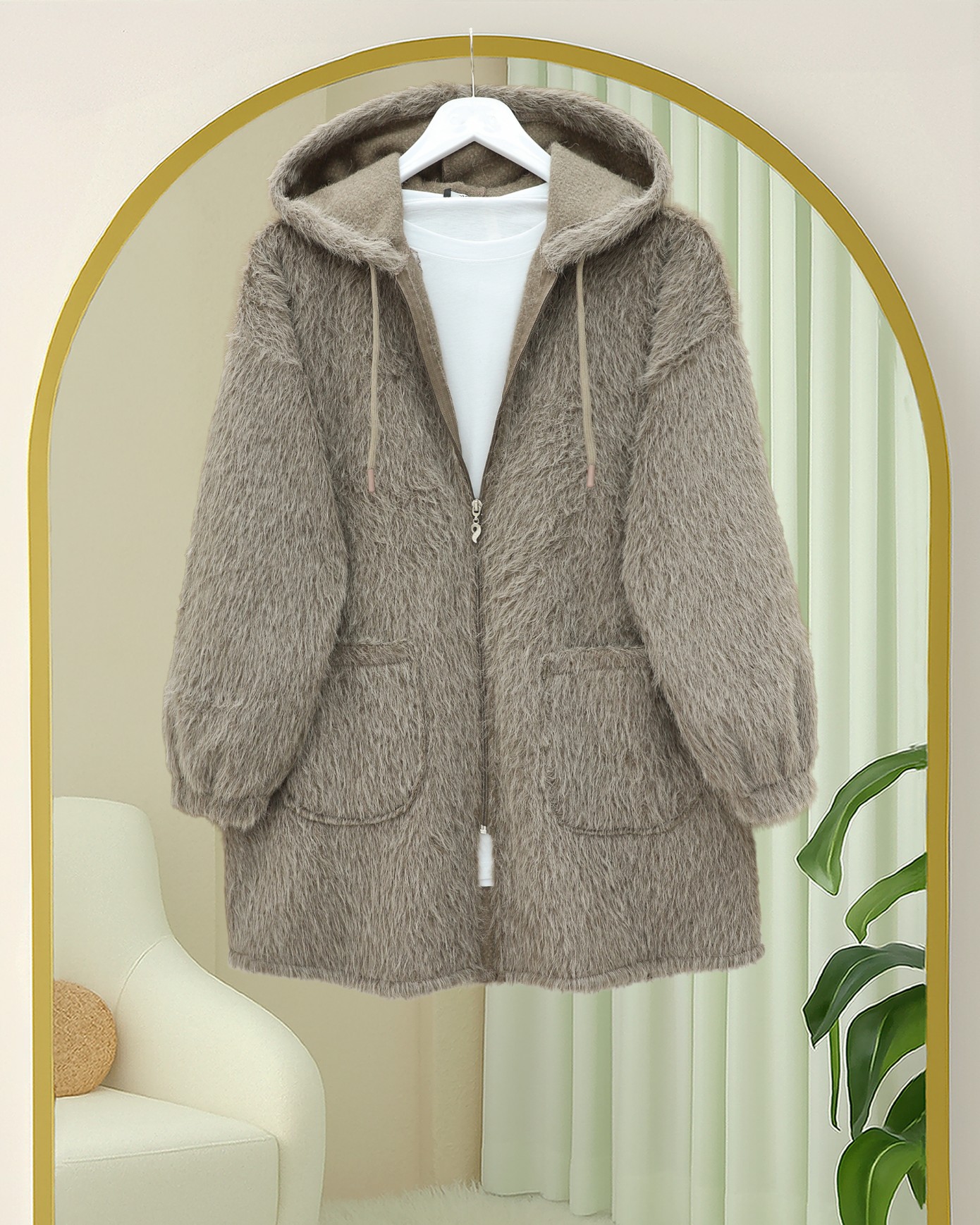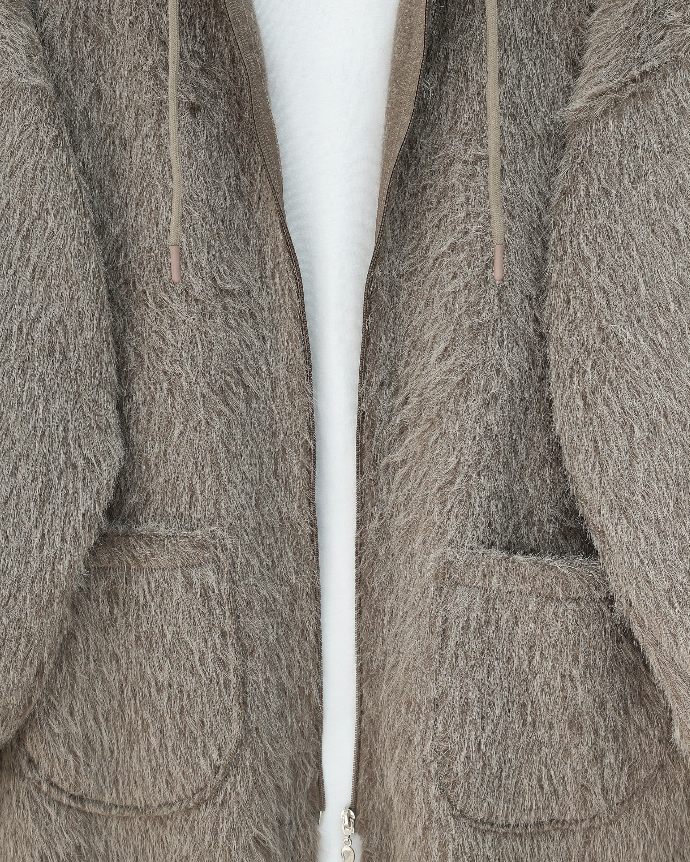 Kapşonlu Cepli Fermuarlı Sakallı Kap -Toprak-Toprak