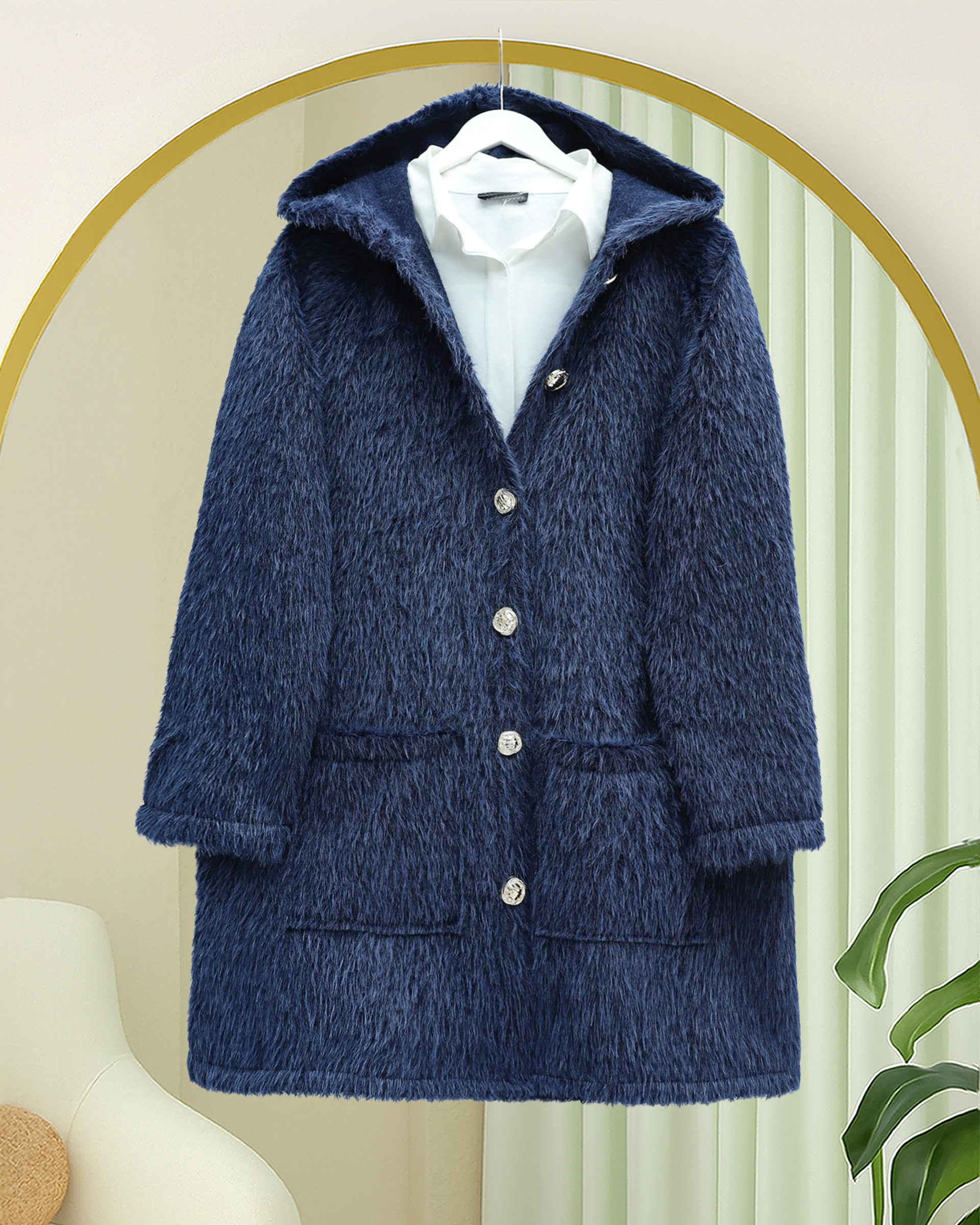 Kapşonlu Gold Düğmeli Cepli Sakallı Kap -Laci-Lacivert