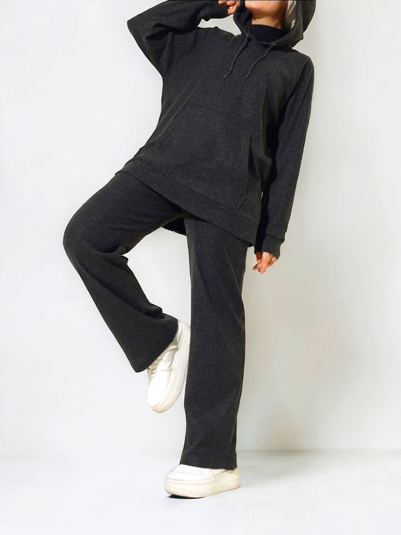 Kapşonlu Kanguru Cepli Fitilli Takım -Antrasit-Antrasit