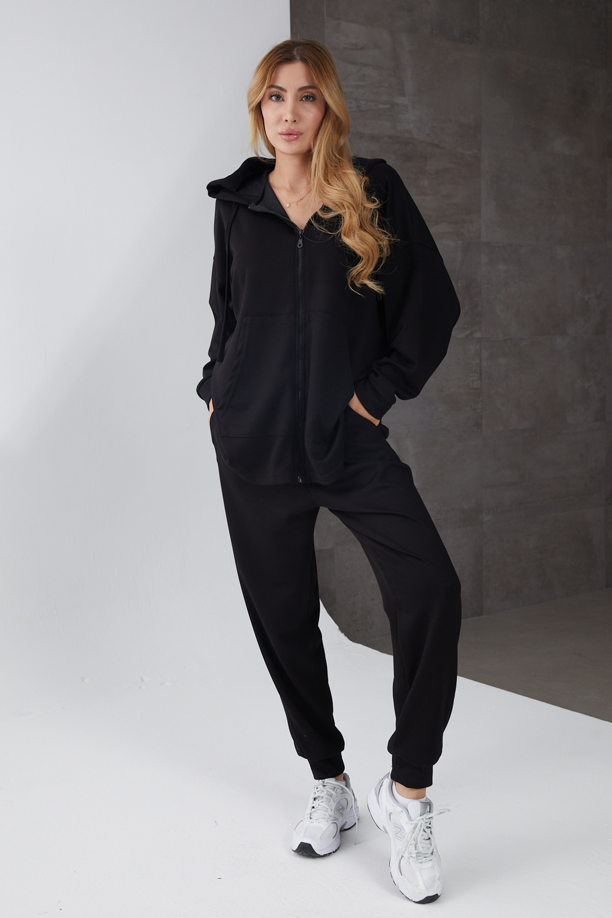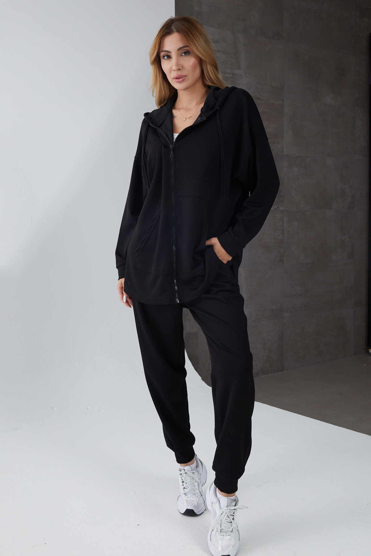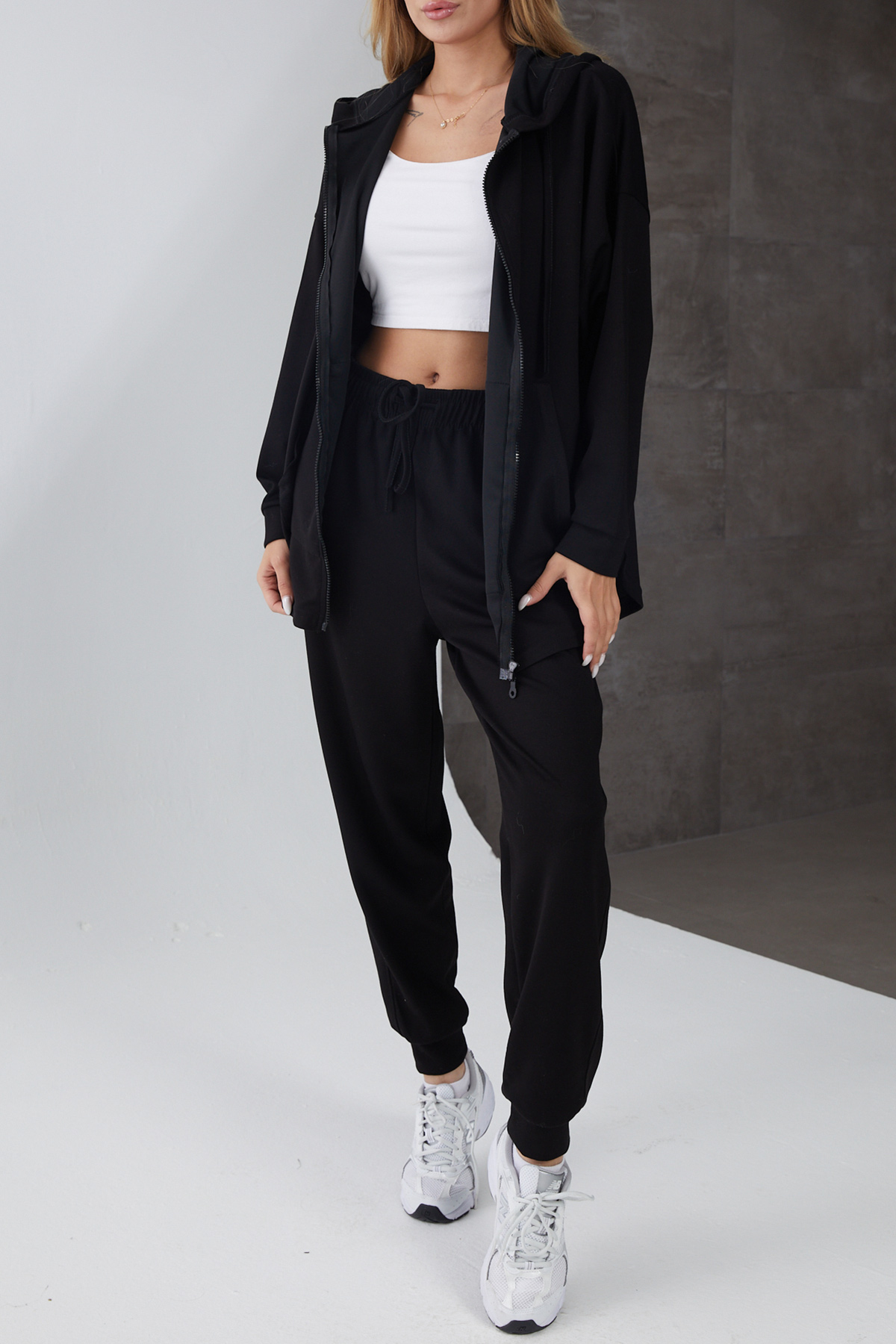 Kapüşonlu Fermuarlı Modal Eşofman Takımı-Siyah