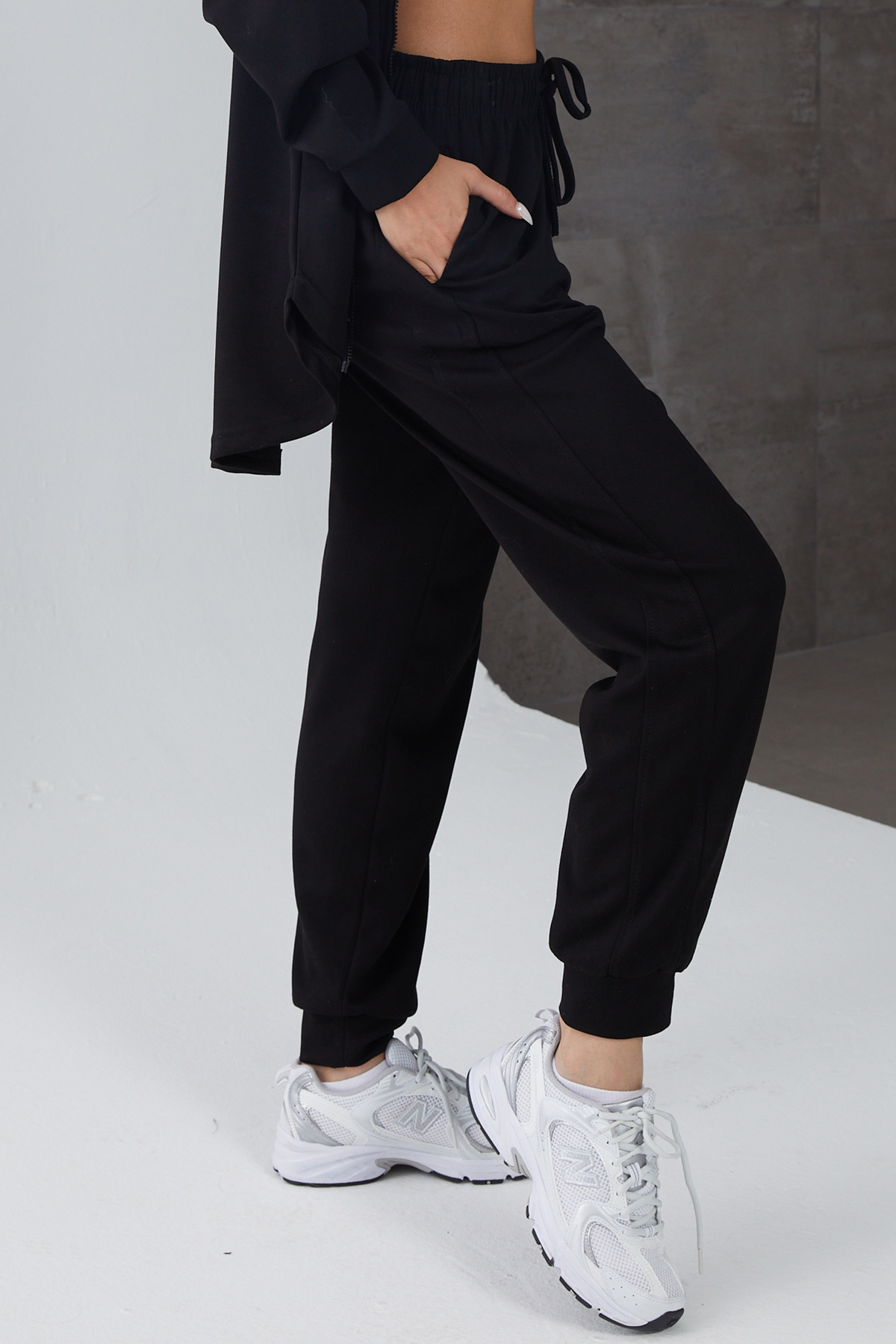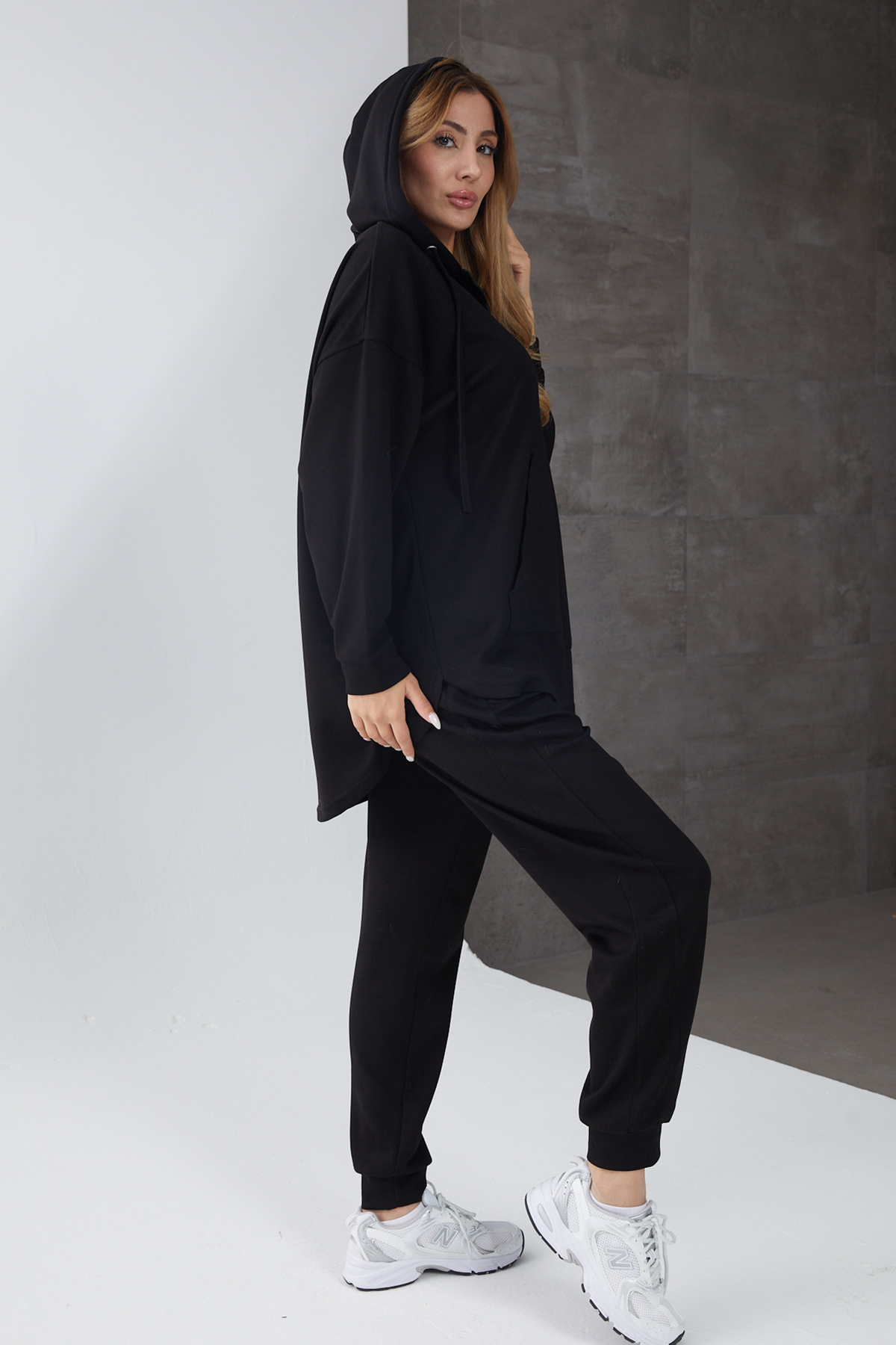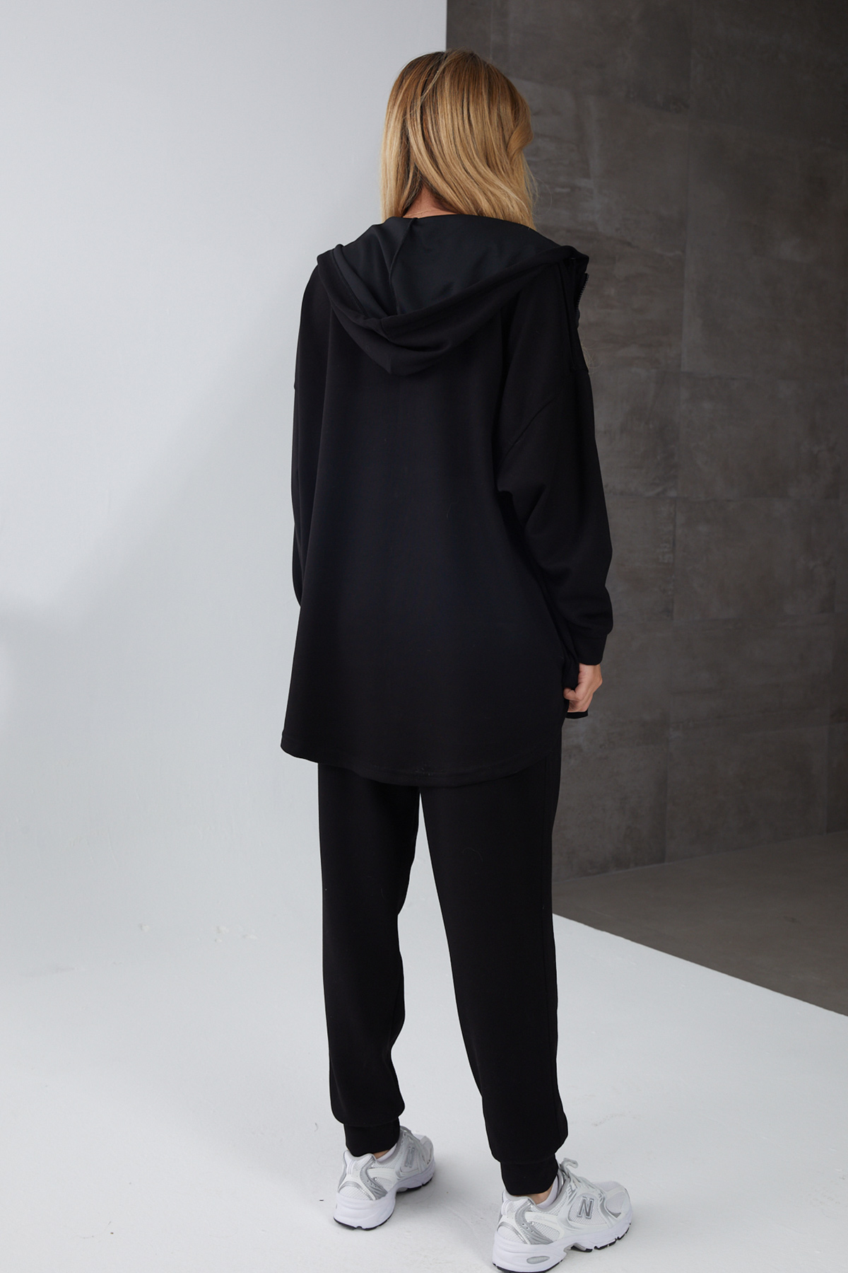 Kapüşonlu Fermuarlı Modal Eşofman Takımı-Siyah