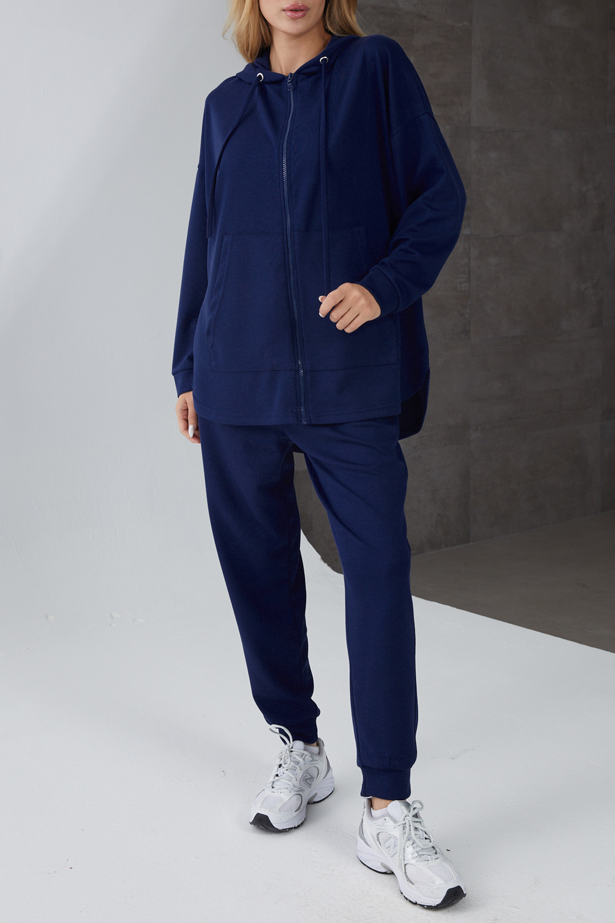 Kapüşonlu Fermuarlı Modal Eşofman Takımı-Lacivert